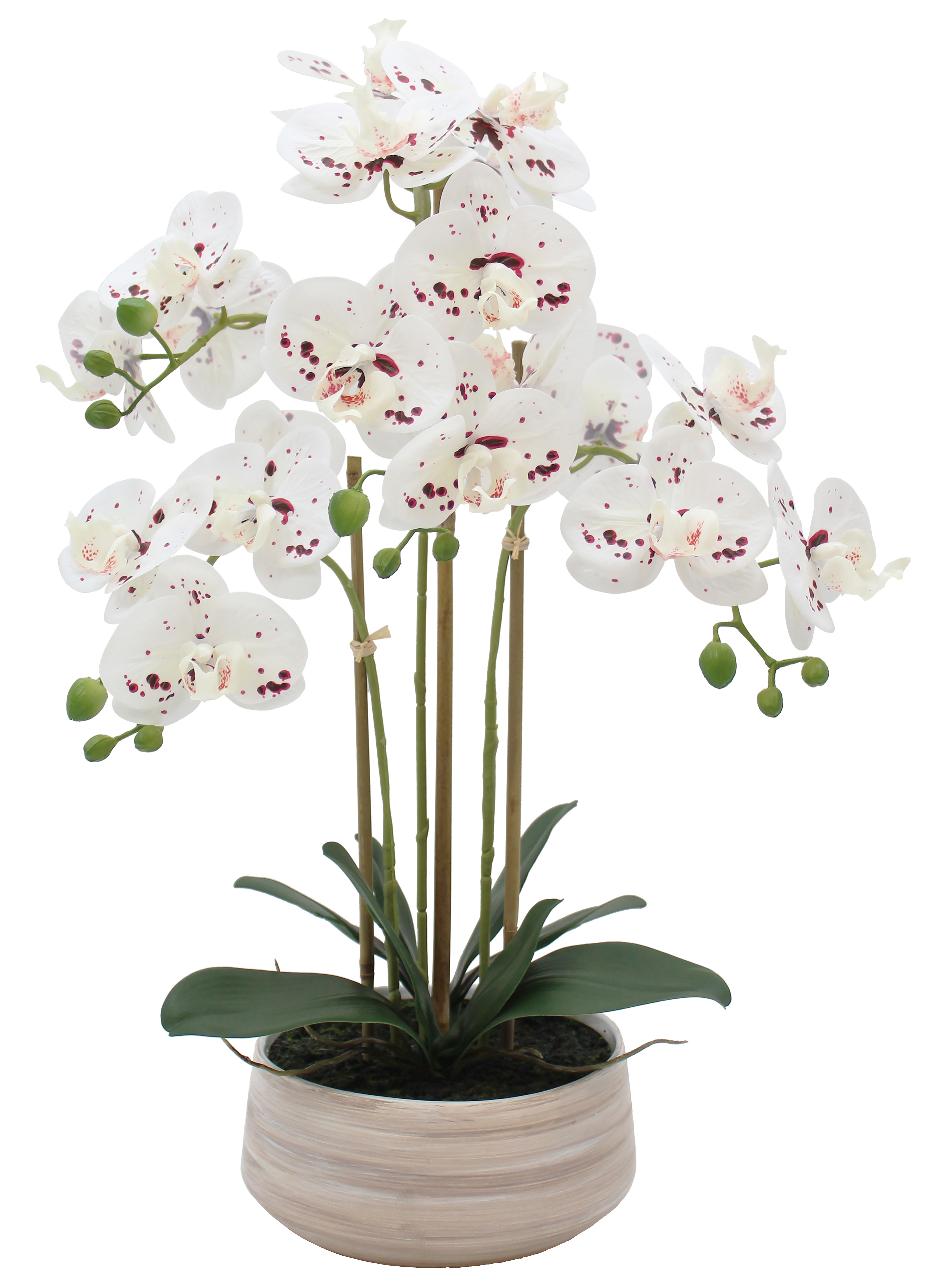 Искусственная орхидея в керамическом горшке, высота 58 см, цвет белый, количество соцветий 3, 1 шт.