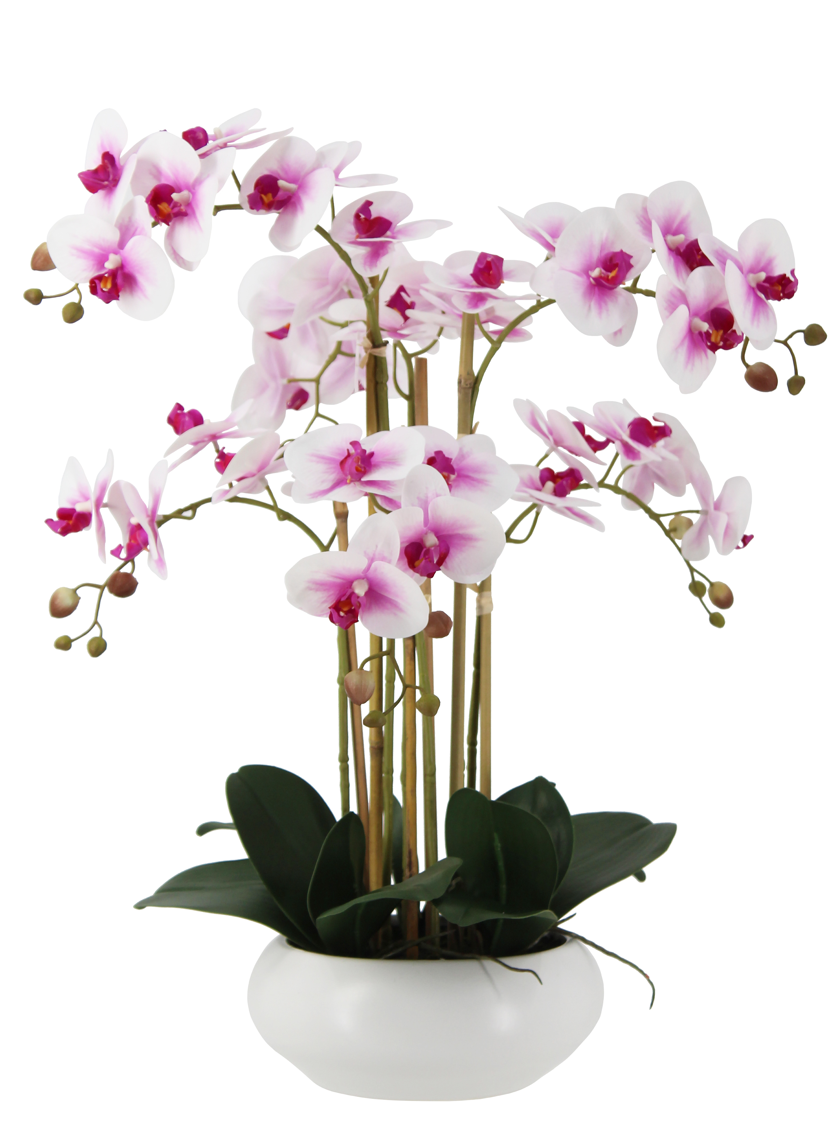 Искусственная орхидея в керамическом горшке, высота 58 см, цвет фуксия-белый, количество соцветий 6, 1 шт.