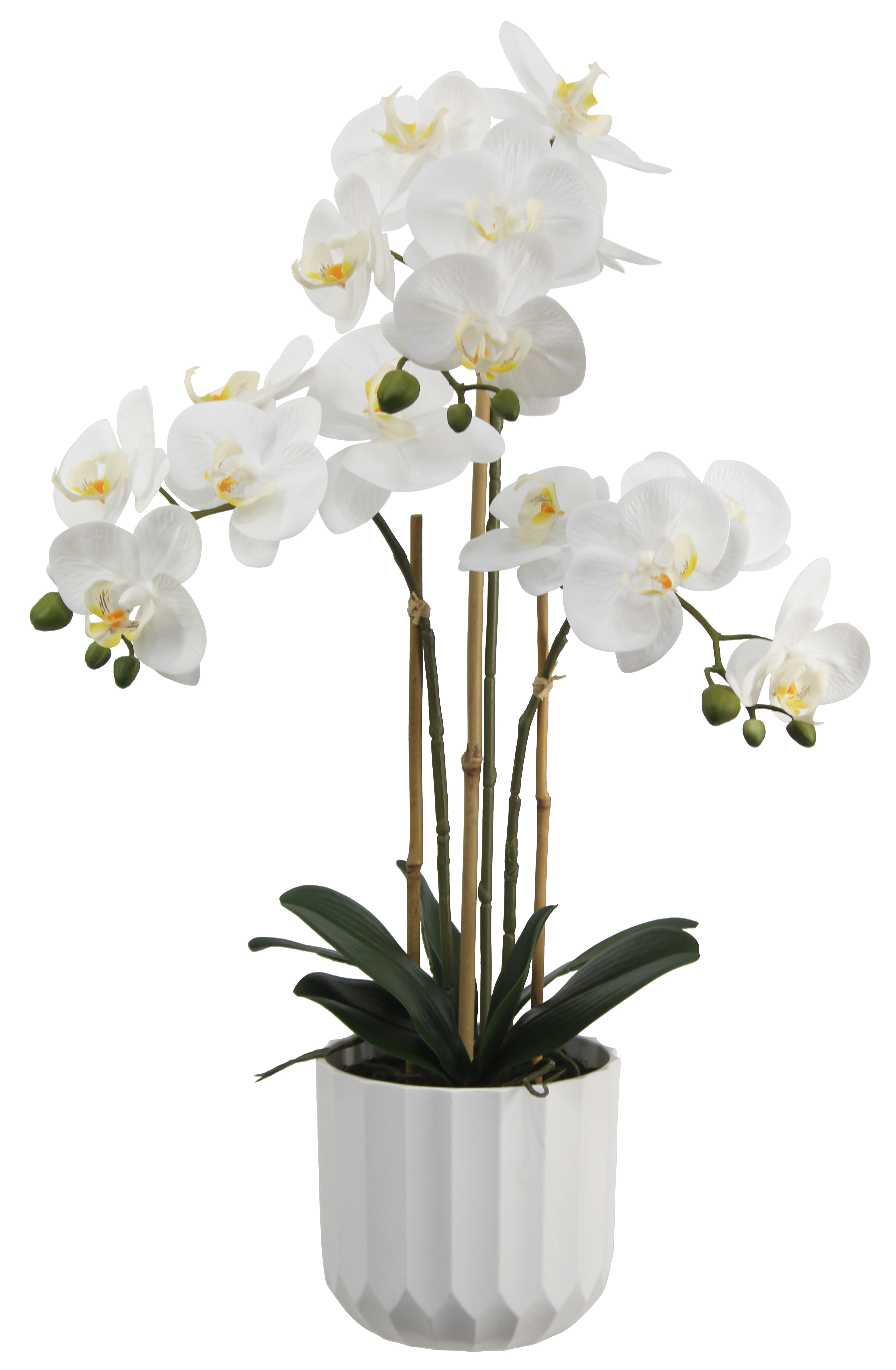 Искусственная орхидея в пластиковом горшке, высота 61 см, цвет белый, количество соцветий 3, 1 шт.