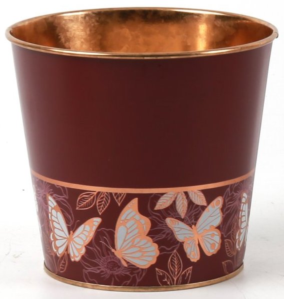 Декоративное кашпо "Бабочки" D13,5XH12,2CM/B10, металл, бордовый