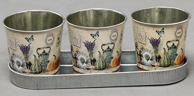 Набор декоративных кашпо на подносе "На столе в саду" кашпо: 8XH8CM, поднос: 23X8XH2/8CM, металл