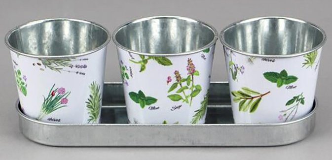 Набор декоративных кашпо на подносе "Мильфлер" кашпо: 6,5XH6CM, поднос:19X6.5XH1.5CM, металл