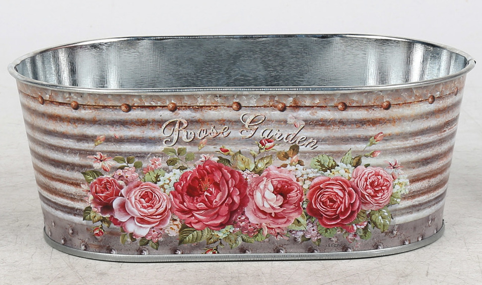 Декоративное овальное кашпо "Садовые розы" 17X10XH6.5 см. металл