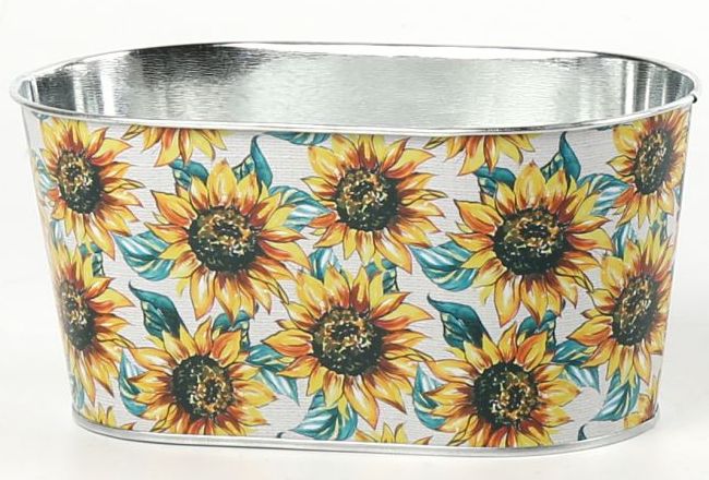 Декоративное овальное кашпо "Подсолнухи" 19,5X11,5XH9/16,5x8,5 см. металл