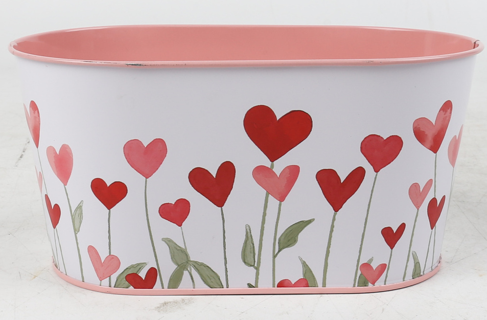Декоративное овальное кашпо "Растущие сердца" 19,5X11,5XH9/16,5x8,5 см. металл