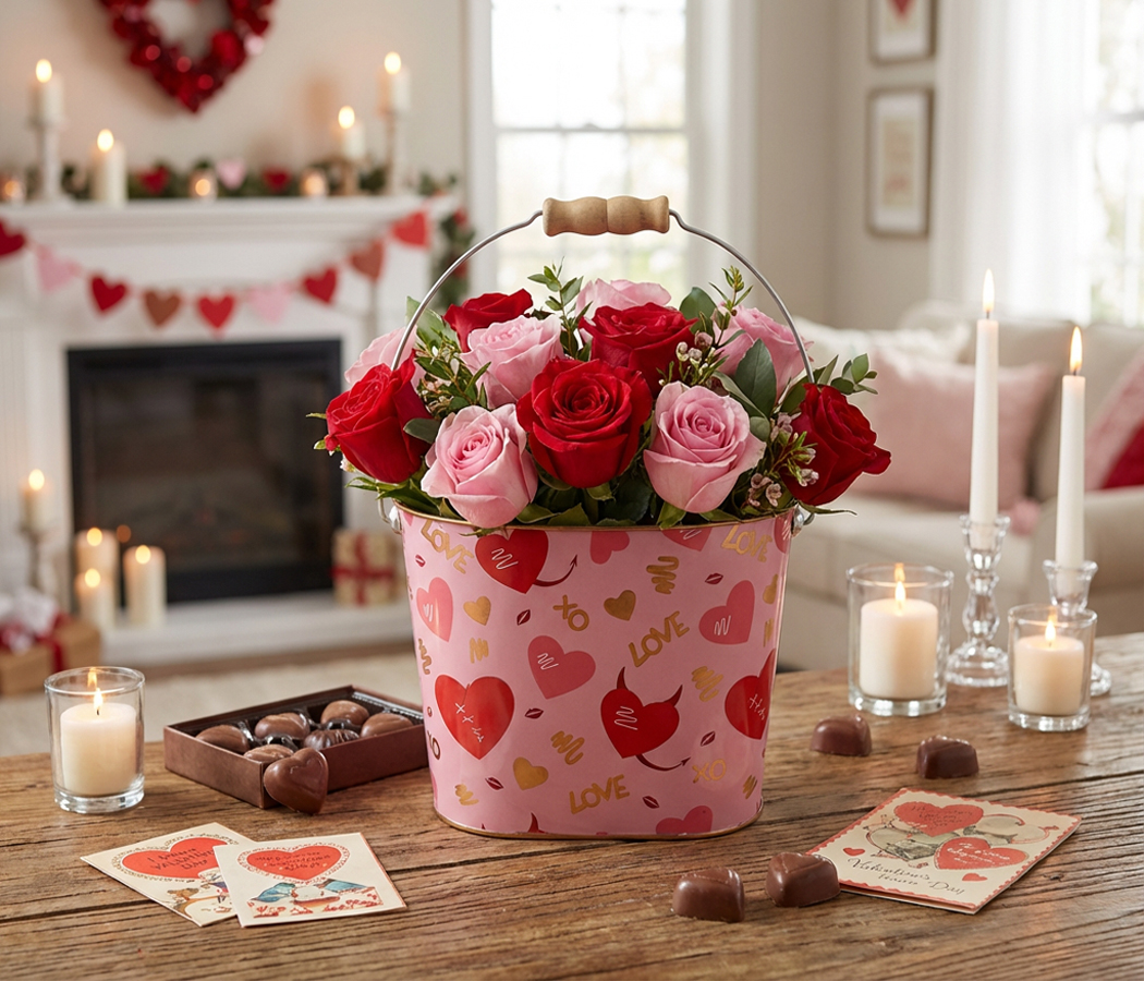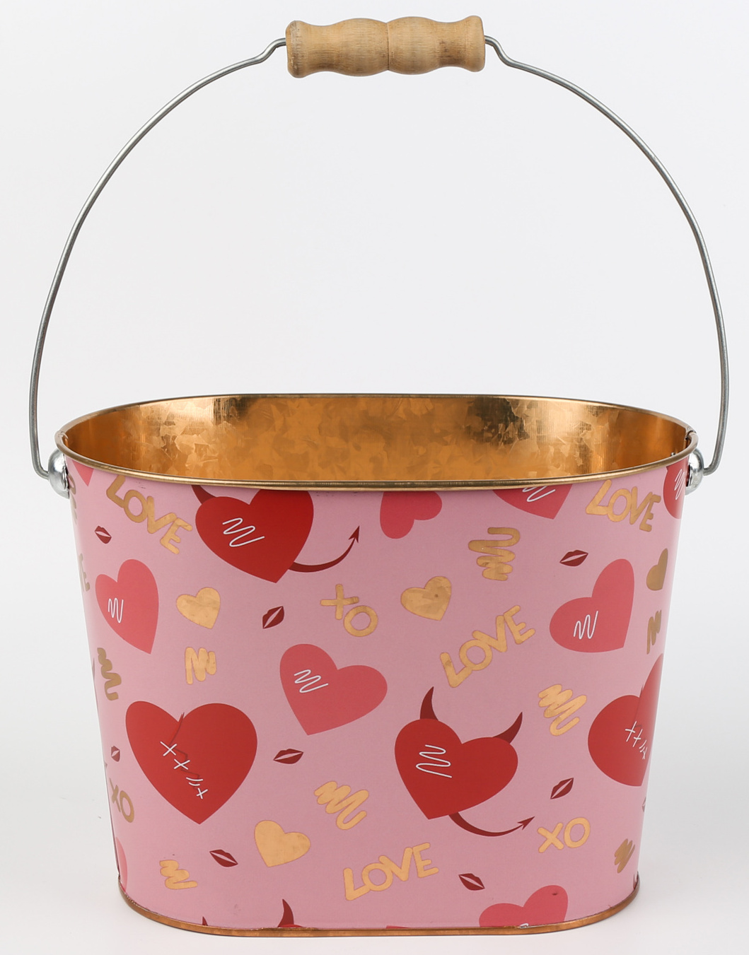Декоративное овальное кашпо-ведерко "Тайны сердец" 20X13XH14.2/26.5CM B16.3X8.3 см, металл