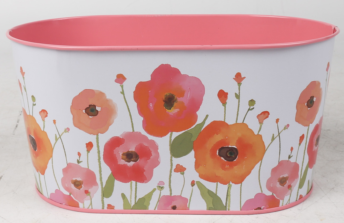 Декоративное овальное кашпо "Маковое утро" 22.5X13.7XH11.3 B:20X11см. металл