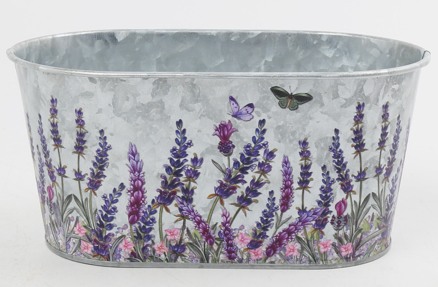 Декоративное овальное кашпо "Лавандовый сад" 22.5X13.7XH11.3 B:20X11 см. металл