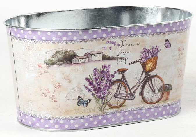 Декоративное овальное кашпо "Путешествие в прованс" 22.5X13.7XH11.3 см. металл