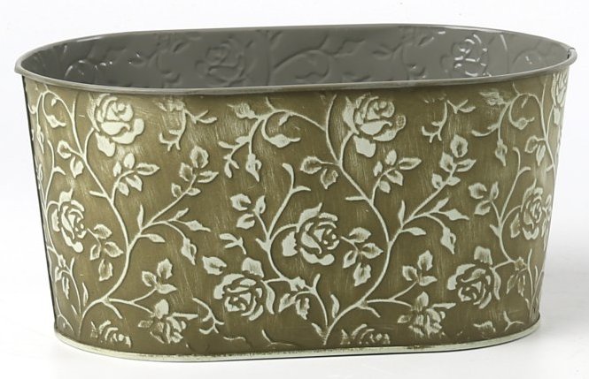 Декоративное овальное кашпо 22.5X13.5XH11.5CM 20X11СМ, оливковый, металл
