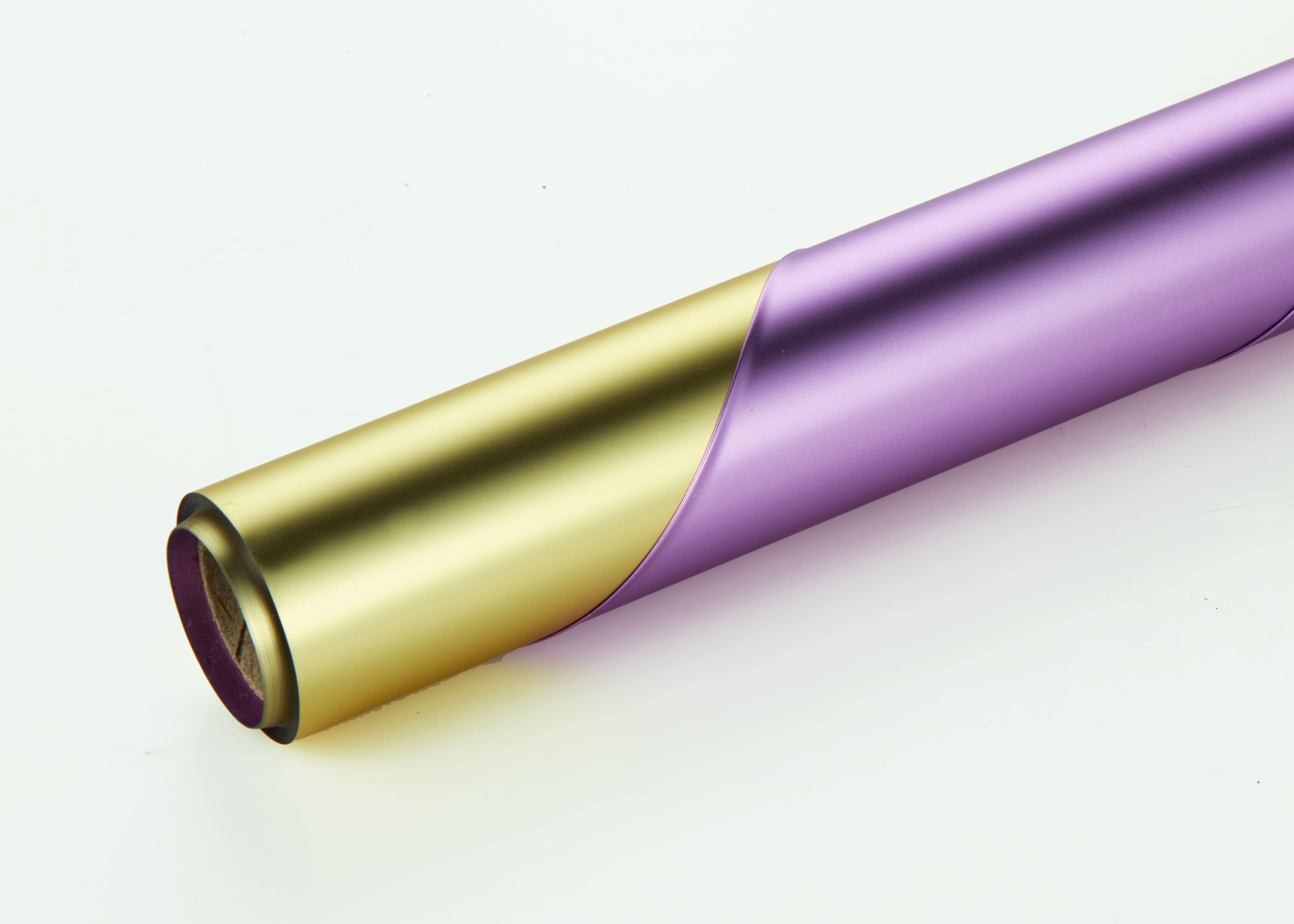Упак. материал флористич. пленка "Двухцветный металл", 53 мкр, 58 см х 10 м, золото / св-лиловый