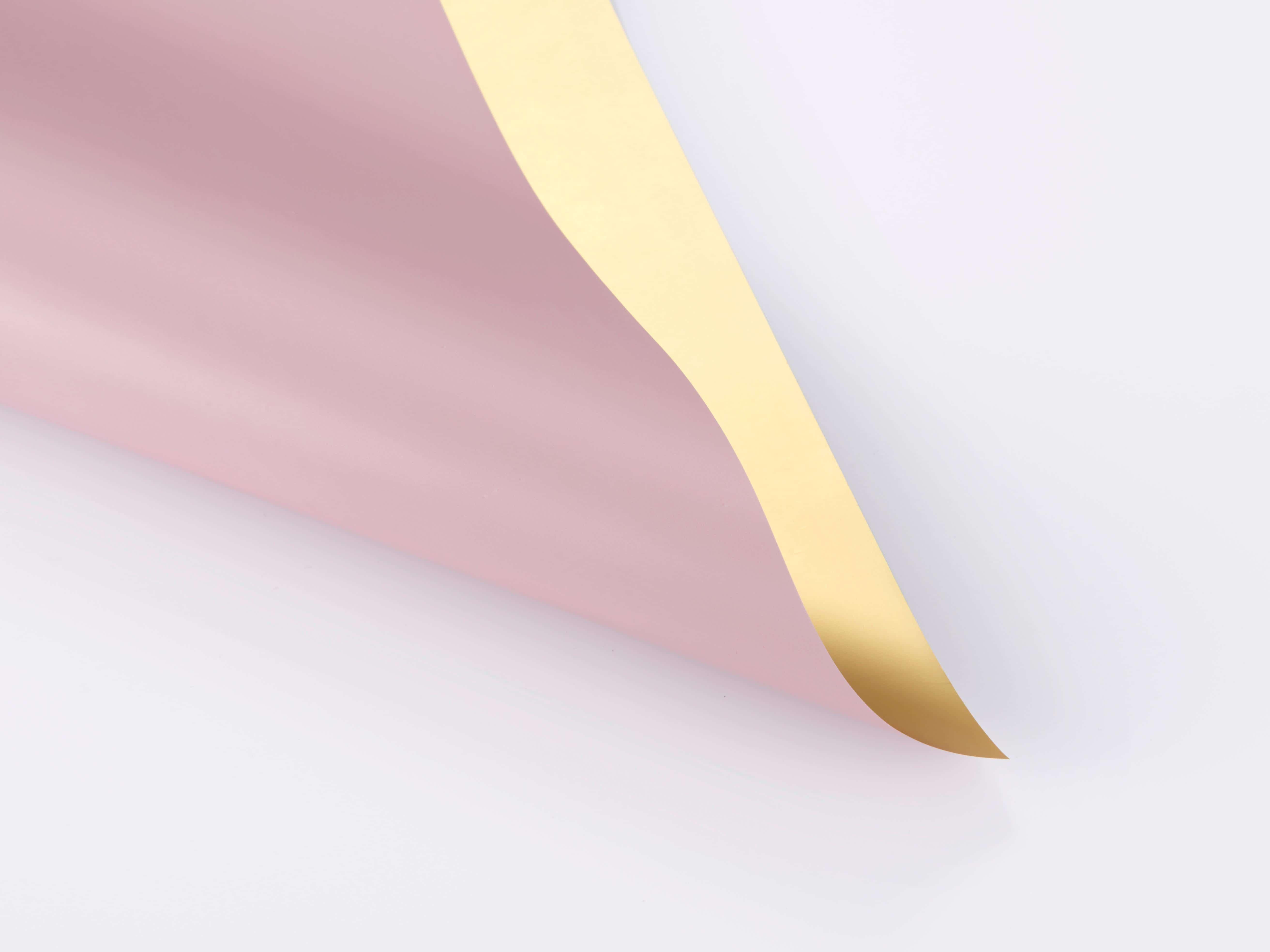 Упак. материал флористическая пленка с золотом, 70 мкр, 58 см х 10 м., розовый лотос