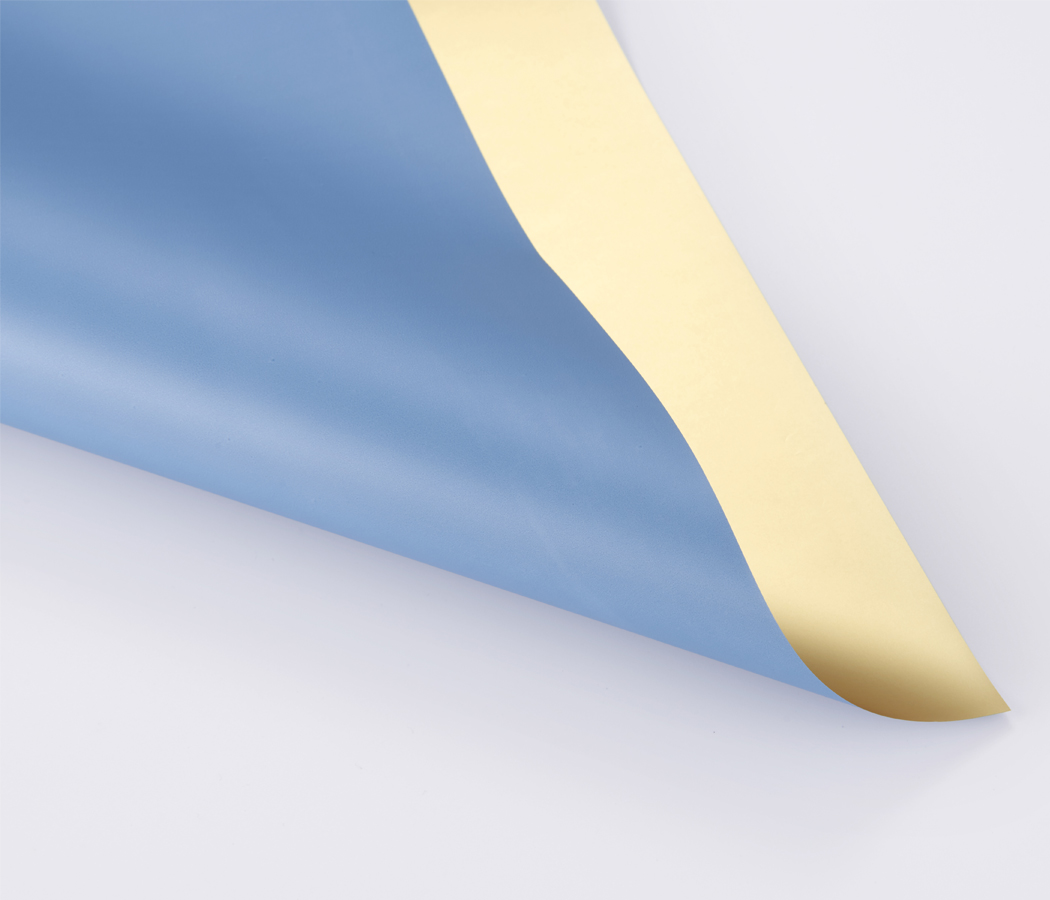 Упак. материал флористическая пленка с золотом, 70 мкр., 58 см х 10 м., голубой