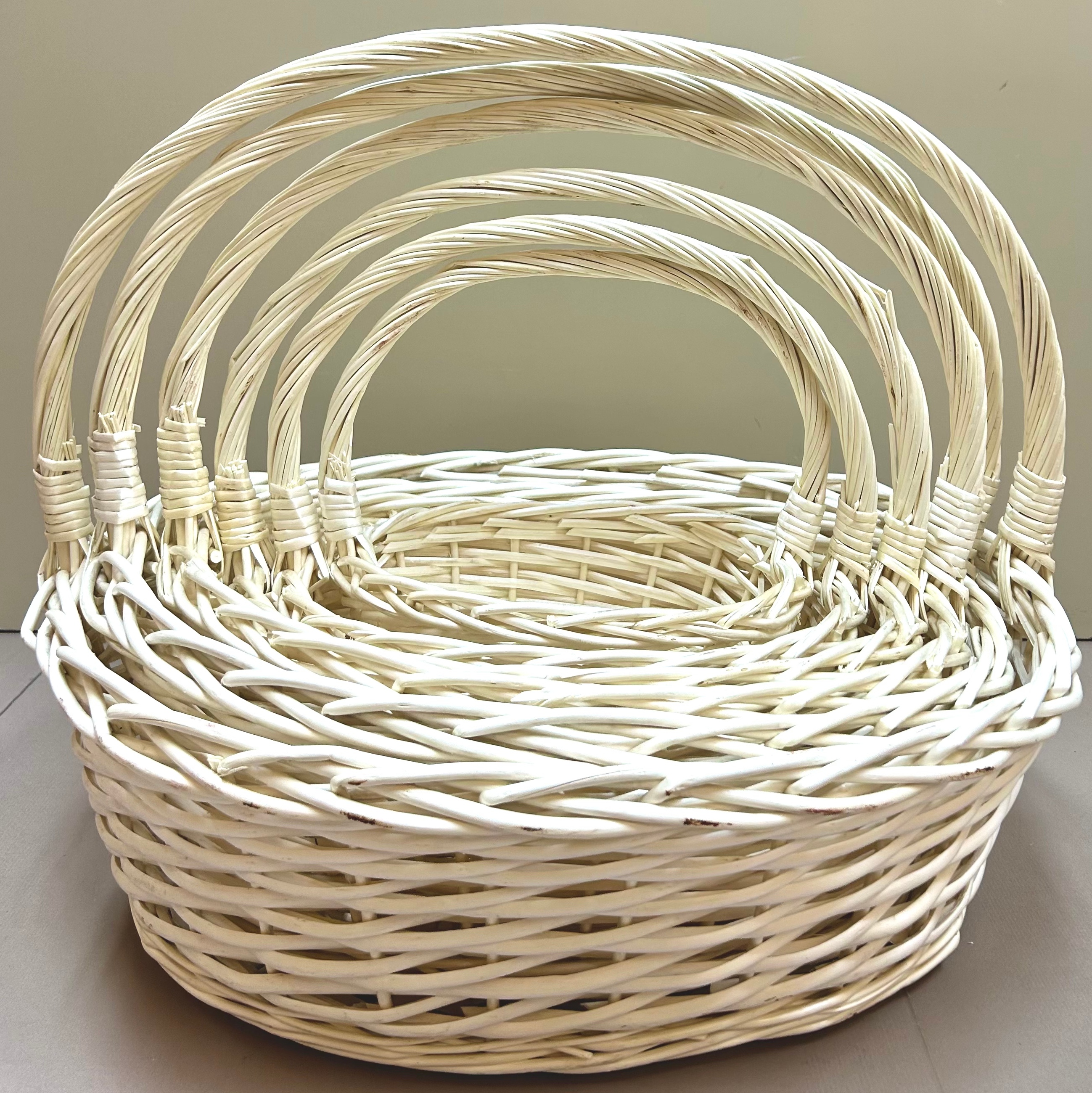 Н-р корзин плетеных (ива): 57*52*19H*49HH, 51*45*17H*45HH, 44*38*15H*38HH, 38*32*12H*32HH, 33*24*11H*30HH, 27*19*10H*26HH, 6 шт., выбеленный