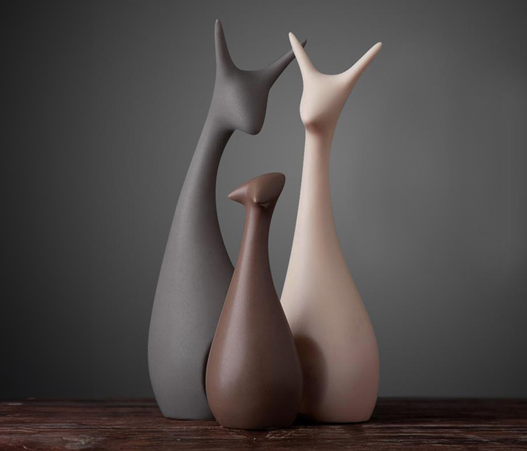 Набор декоративных статуэток 3 шт., керамика, цвет черный/коричневый/розовый, 25*7; 25*7; 15*6 см.