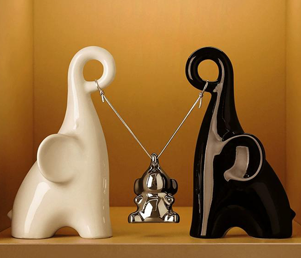 Набор декоративных статуэток "Слоны" 3 шт., керамика, цвет черный/белый/серебро, 11*9,5*20; 11*9,5*20; 5,5*3,5*7 см.