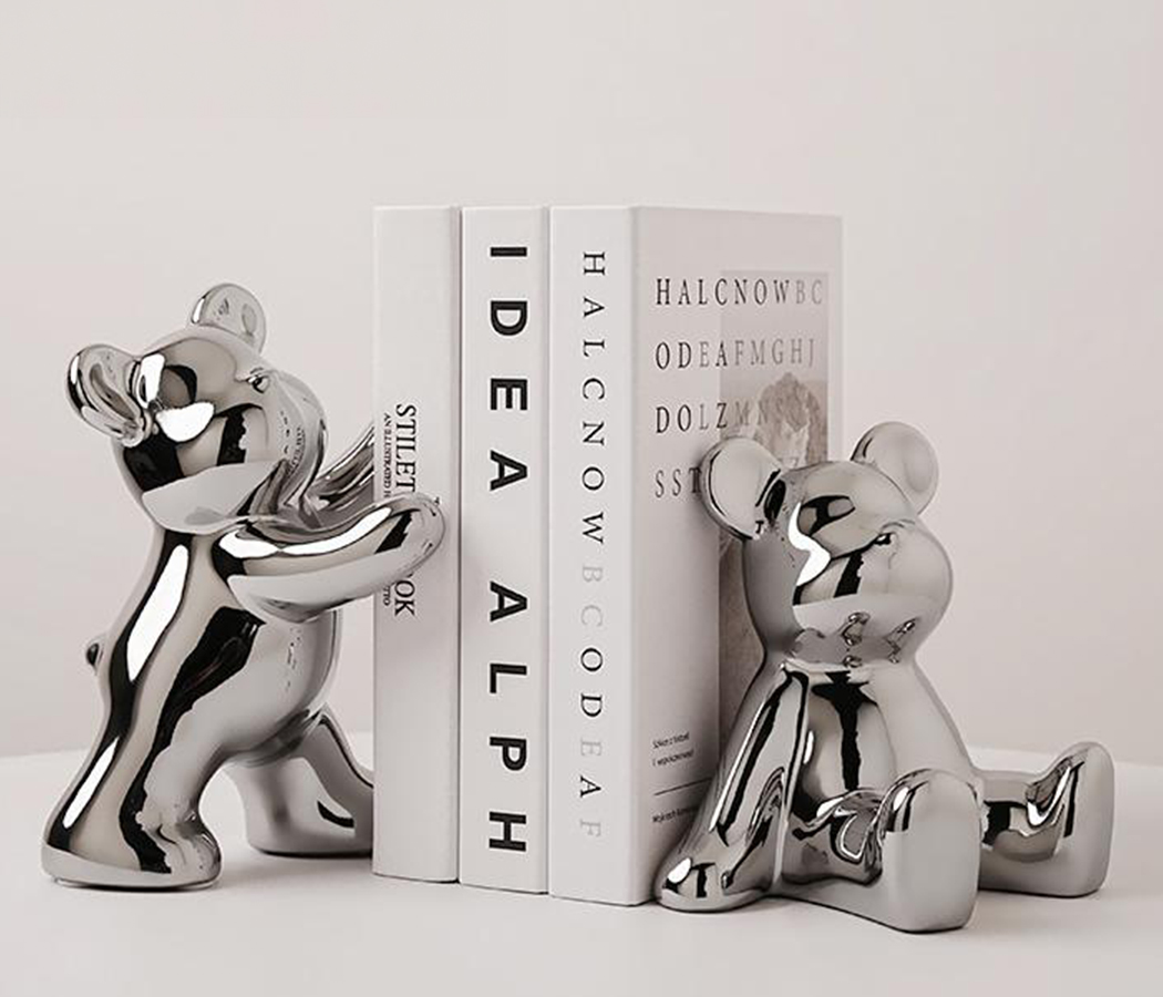 Набор держателей для книг "Мишки" 2 шт., керамика, цвет серебро, 13*10*19; 11*15*15 см.