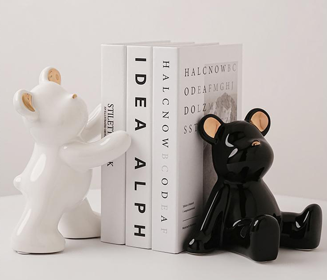 Набор держателей для книг "Мишки" 2 шт., керамика, цвет белый/черный, 13*10*19; 11*15*15 см.