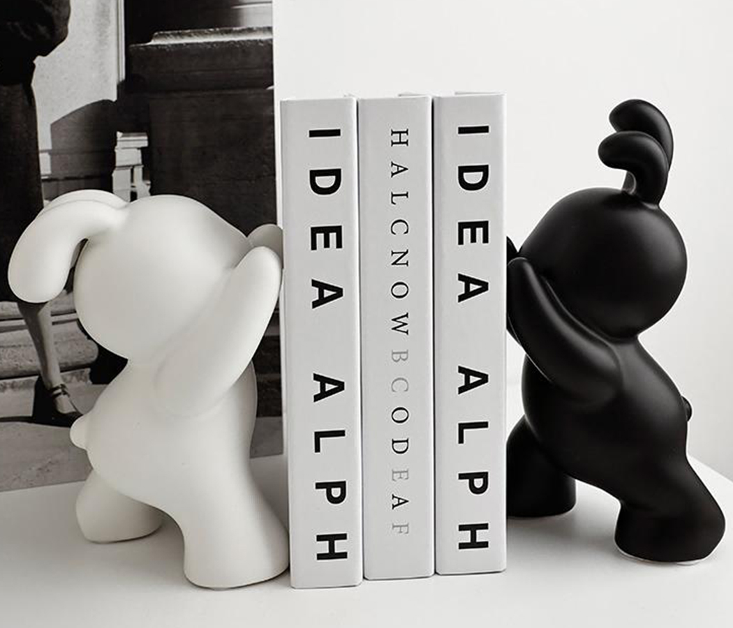 Набор держателей для книг "Зайчики" 2 шт., керамика, цвет белый/черный, 10,5*8,5*21; 12,5*8,5*18 см.