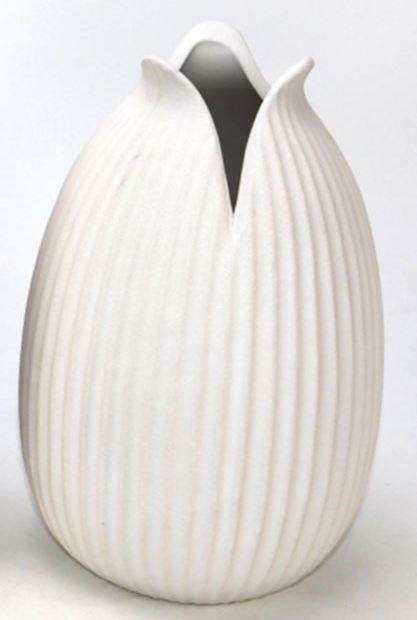 Ваза керамическая "Гранат" с вертикальными полосами, цвет белый, 16,9*16,9*26,5 см.