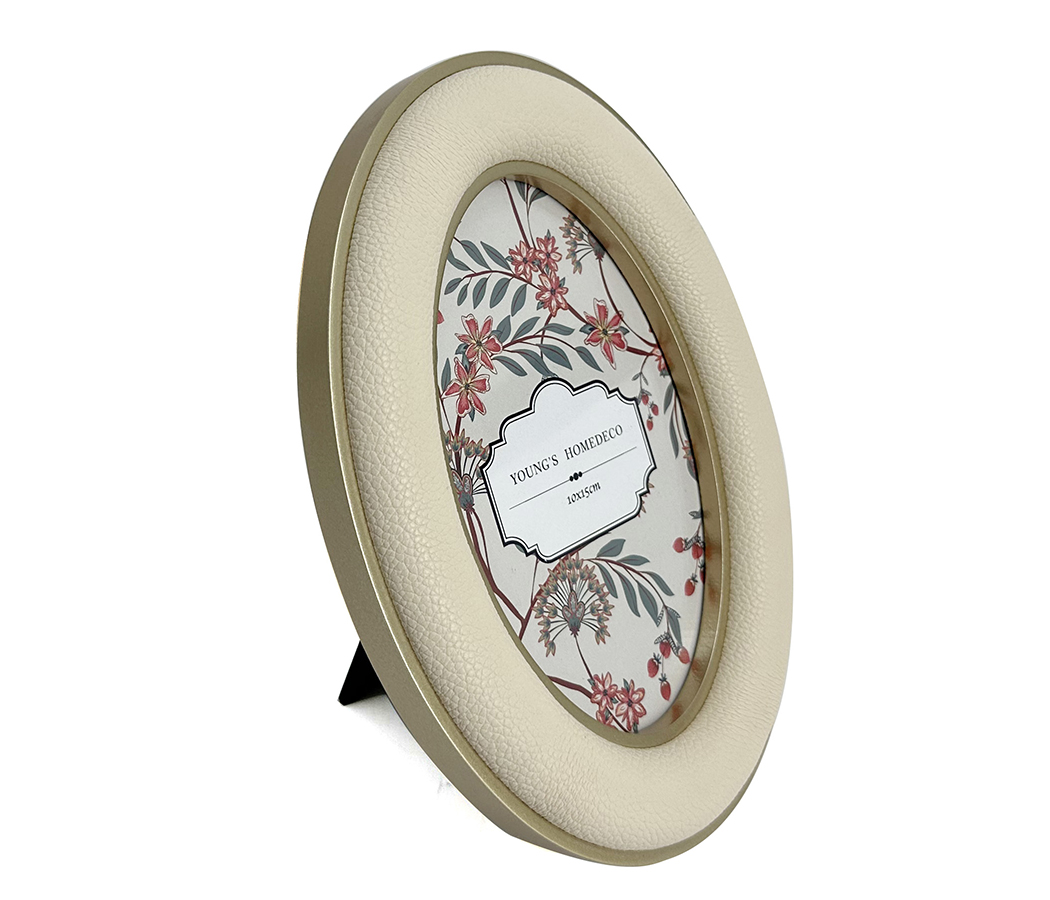 Фоторамка декоративная из МДФ с кожаной отделкой, серия "Престиж", цвет кремовый, со стеклом, 10x15 см