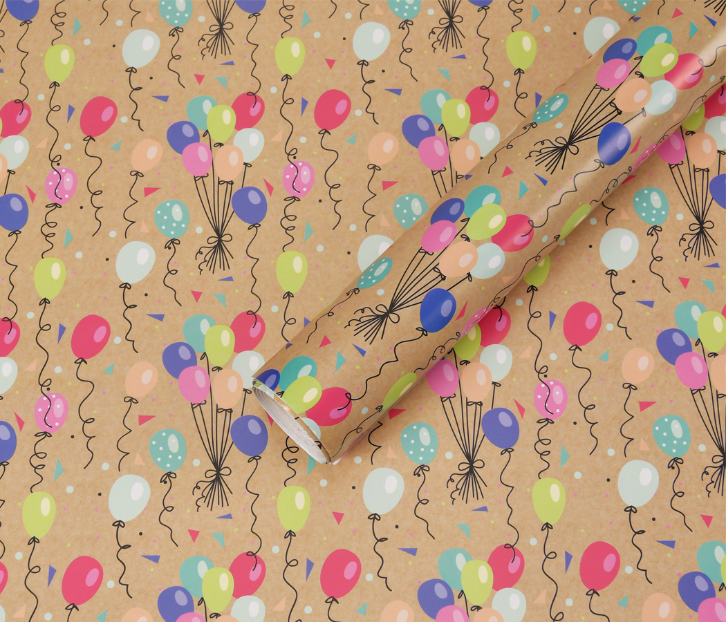 Бумага упаковочная "Воздушные шарики" 80г/м2, 70х100см, 10 листов/рулон