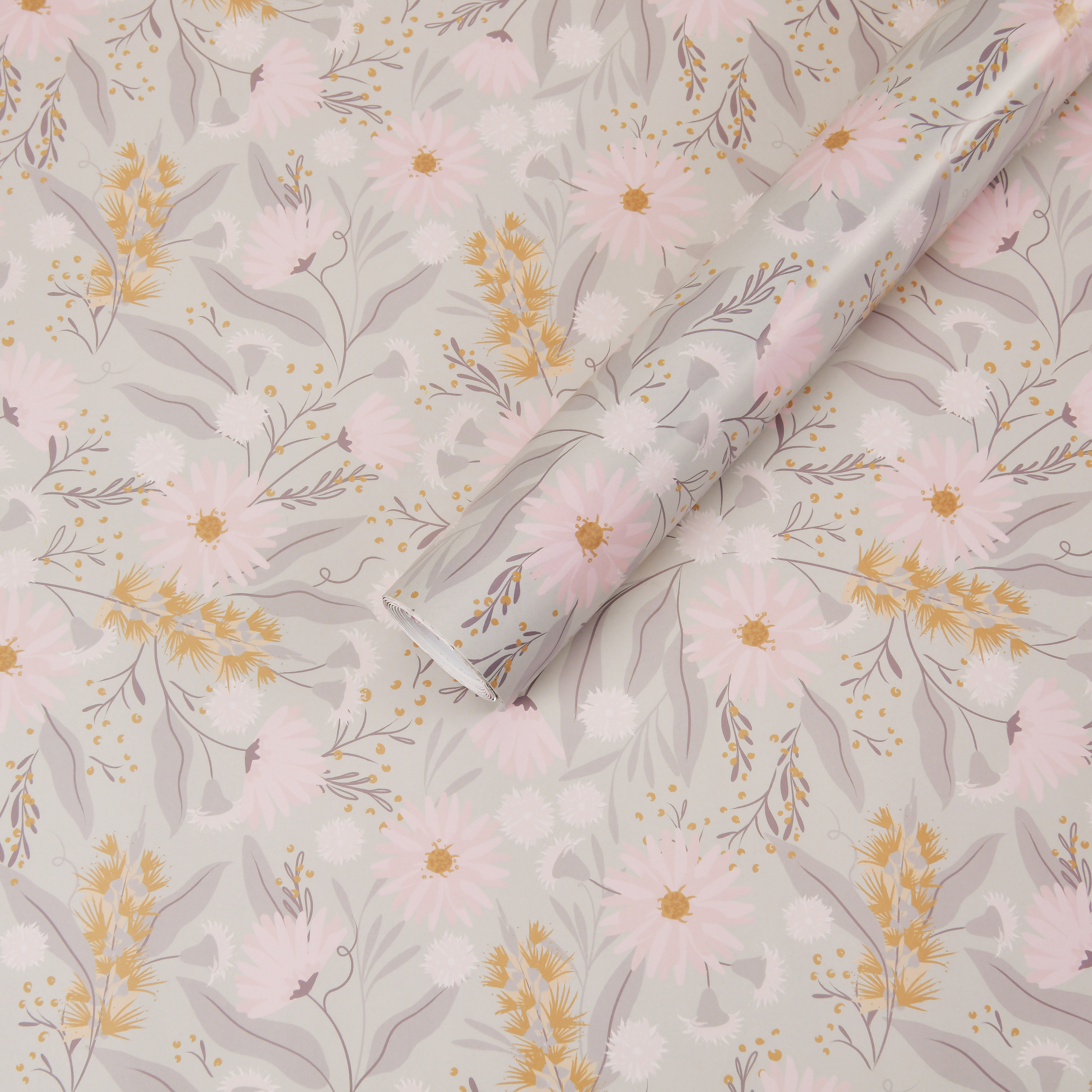 Бумага упаковочная "Розовые цветы" 80г/м2, 70х100см, 10 листов/рулон