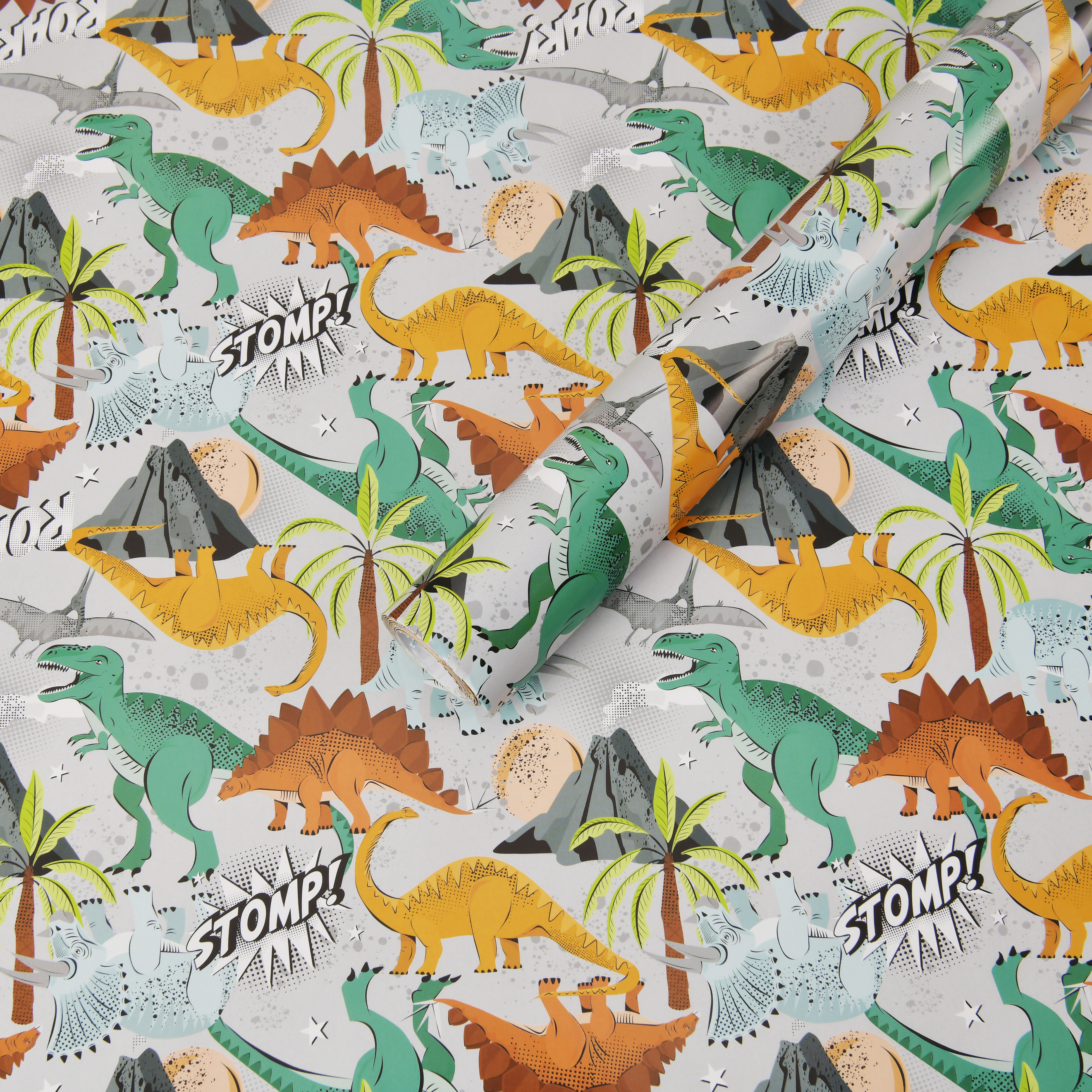Бумага упаковочная "Динозаврики" 80г/м2, 70х100см, 10 листов/рулон