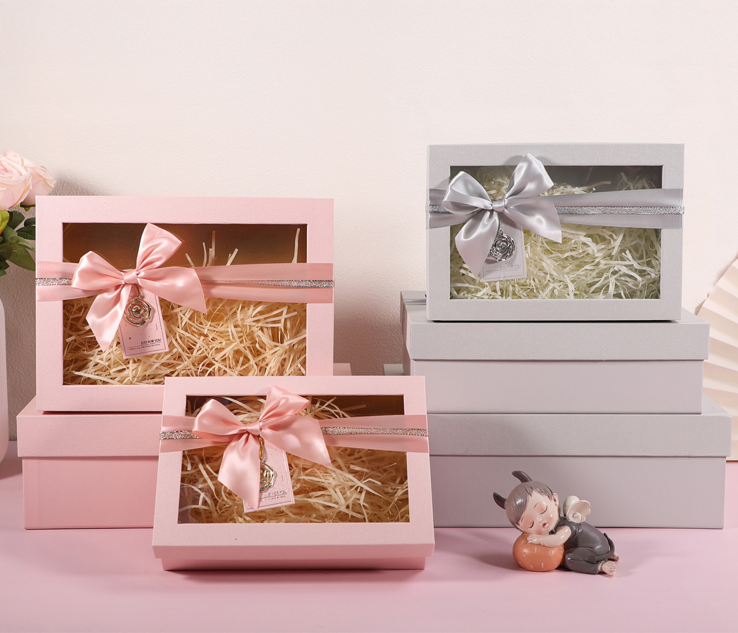 Набор коробок подарочных с бантиком 33,5*25*11,5, 29*21*9, 24,5*17*6,5, 3 шт., св.серый