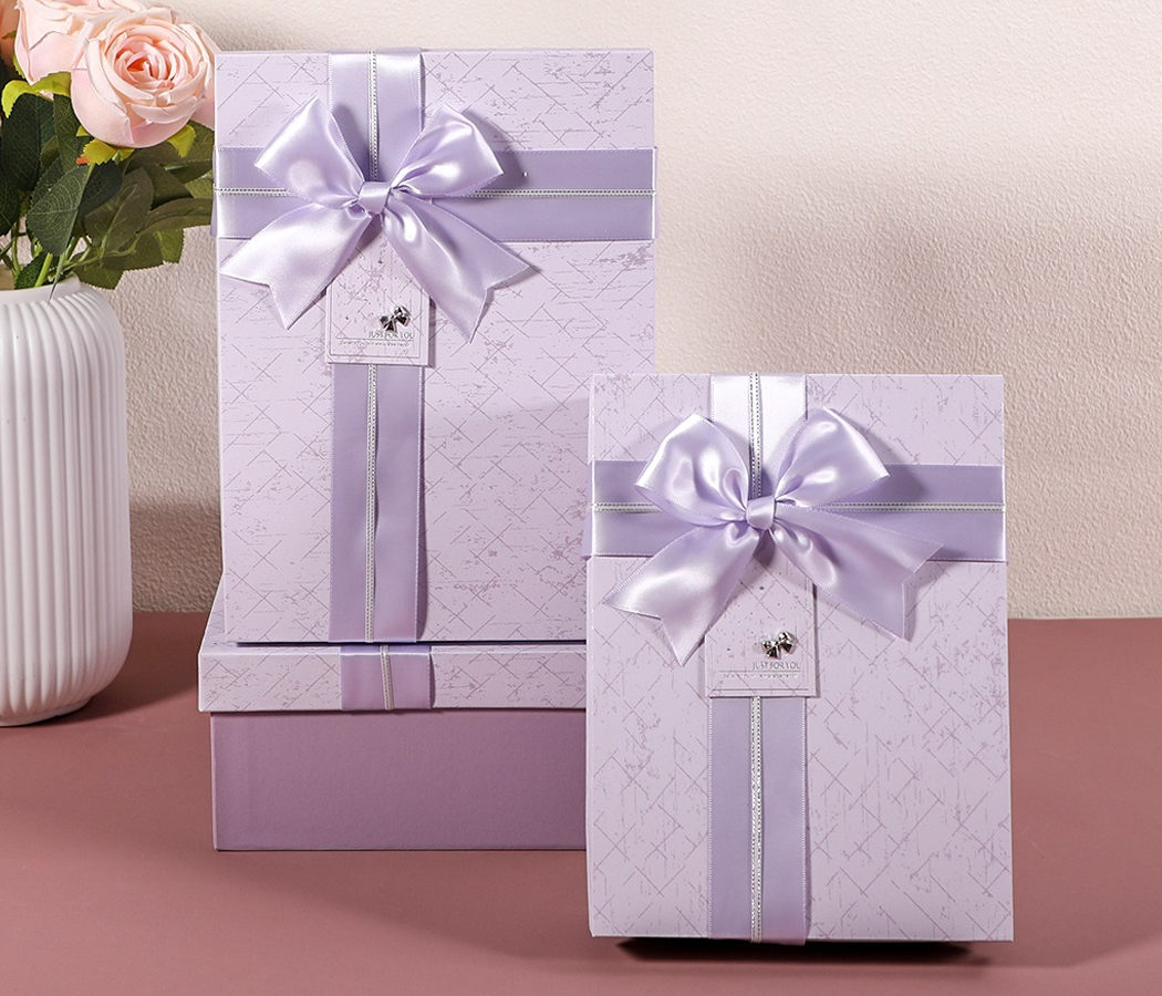 Набор коробок подарочных 22,5*16*9,5, 20*14*8, 17,5*12,5*6,5 см, 3 шт., св.сиренев.