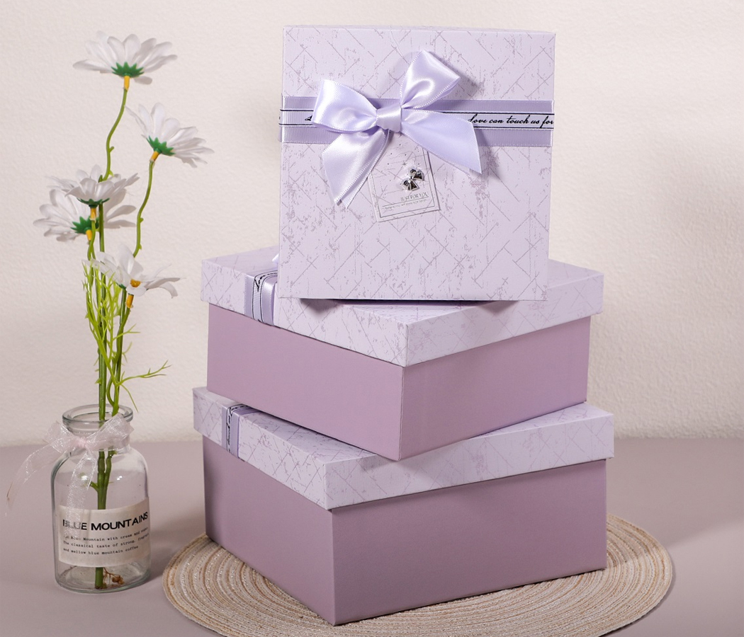 Набор коробок подарочных 19*19*9,5, 17*17*8, 15*15*6,5 см, 3 шт., св.сиреневый