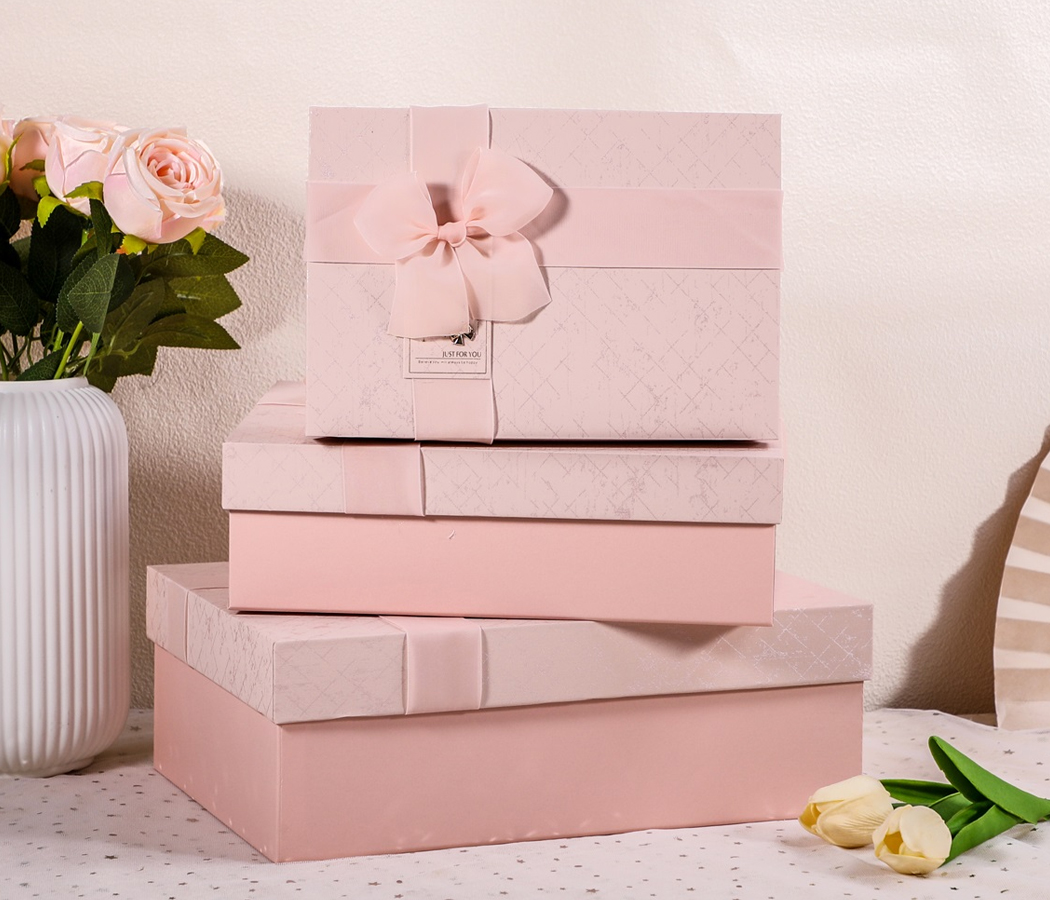 Набор коробок подарочных 33,5*25*11,5, 29*21*9, 24,5*17*6,5 см, 3 шт. светло-розовый