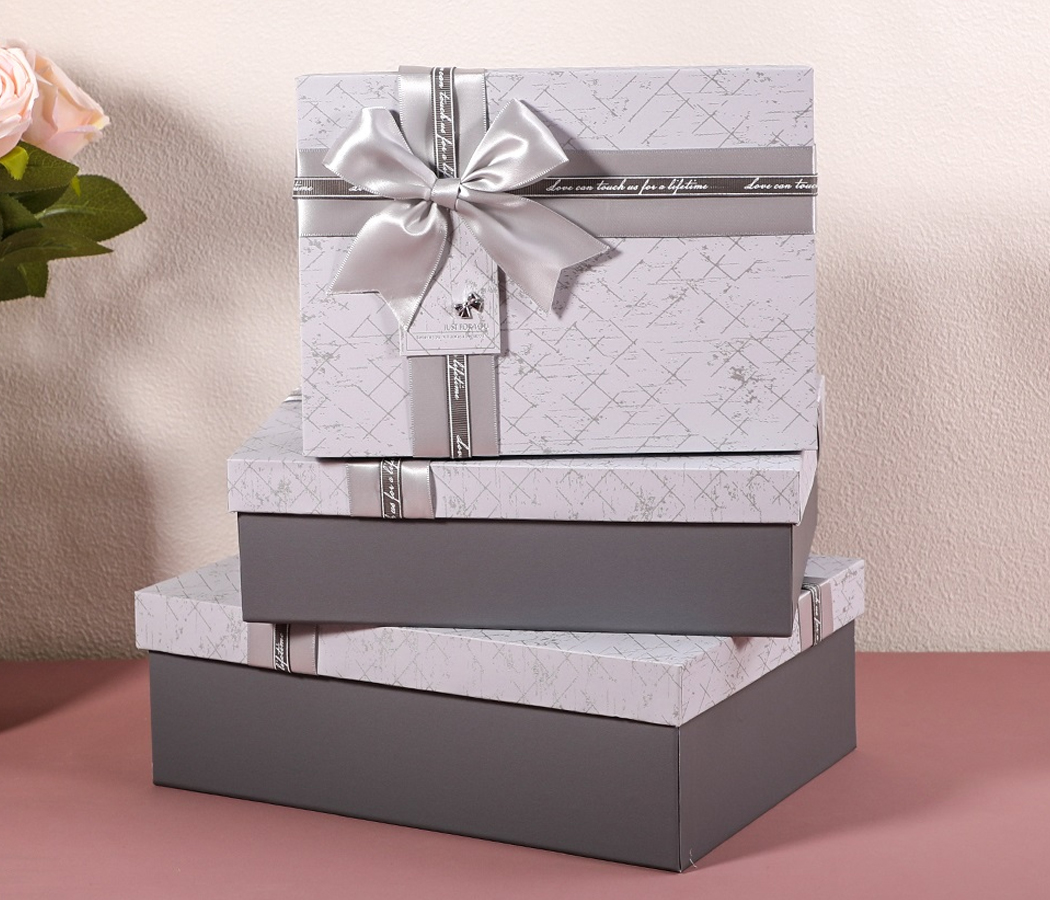 Набор коробок подарочных 29*21*9,5, 26*19*8, 23*17*6,5 см, 3 шт, св.серый