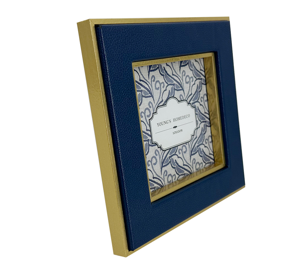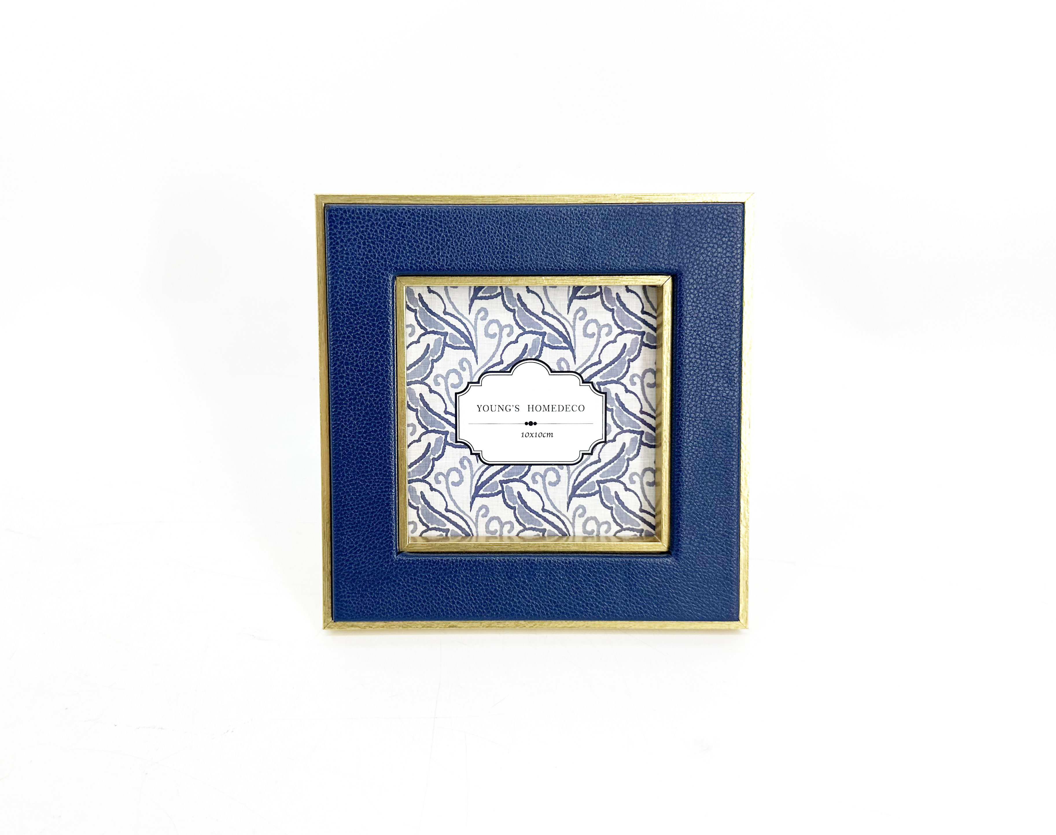 Фоторамка декоративная из МДФ с кожаной отделкой, серия "Элегант", цвет синий, со стеклом, 10x10 см