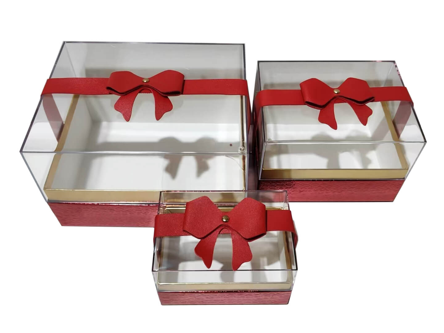 Набор коробок для цветов "Фантазия" 23*18*15, 18*14*12,5, 14*9*9 см, 3 шт., красный