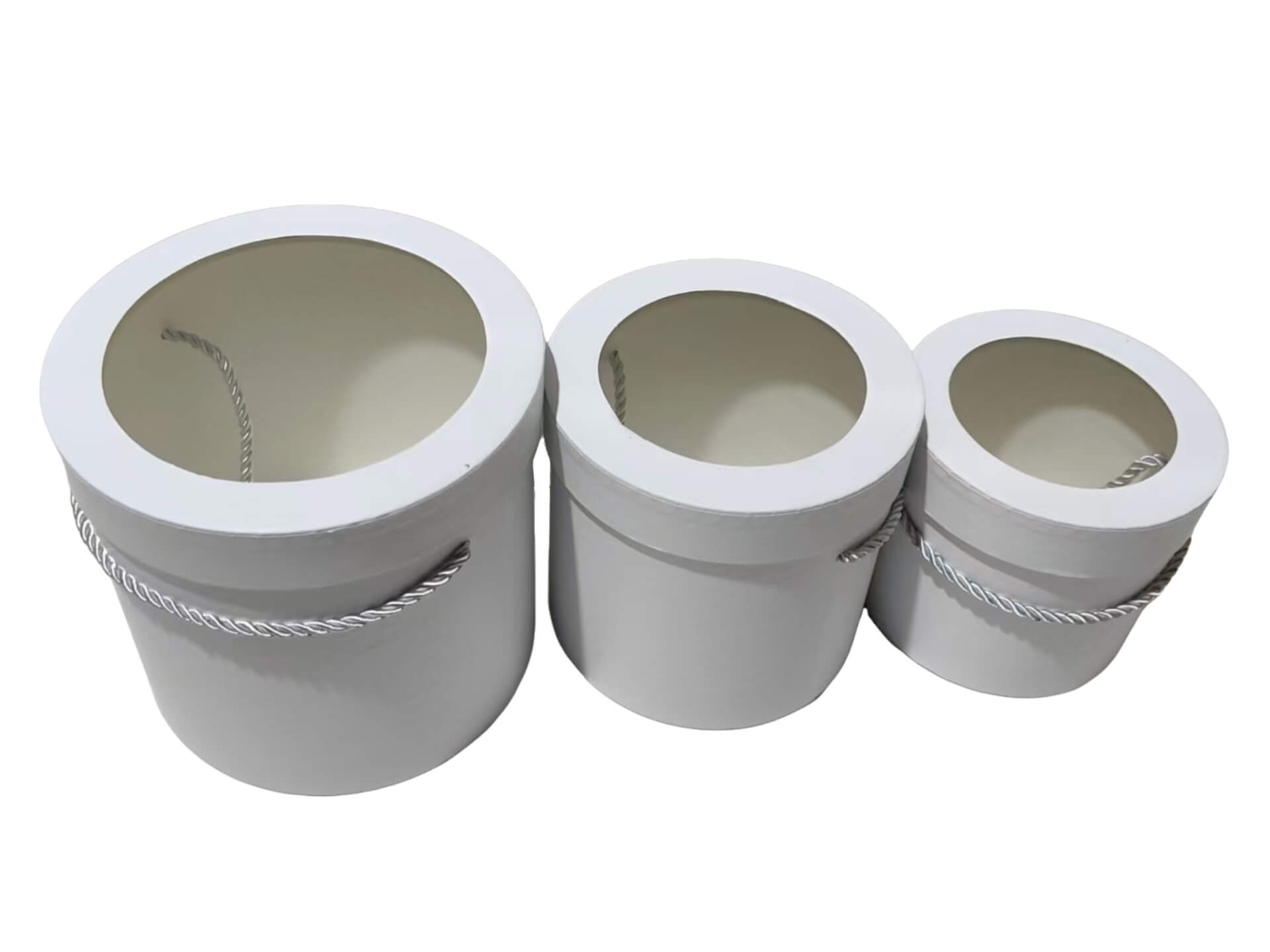Набор коробок для цветов с крышкой с прозрачным окошком 18,5*17, 15,3*14,5, 13,5*12 см, 3 шт., белый