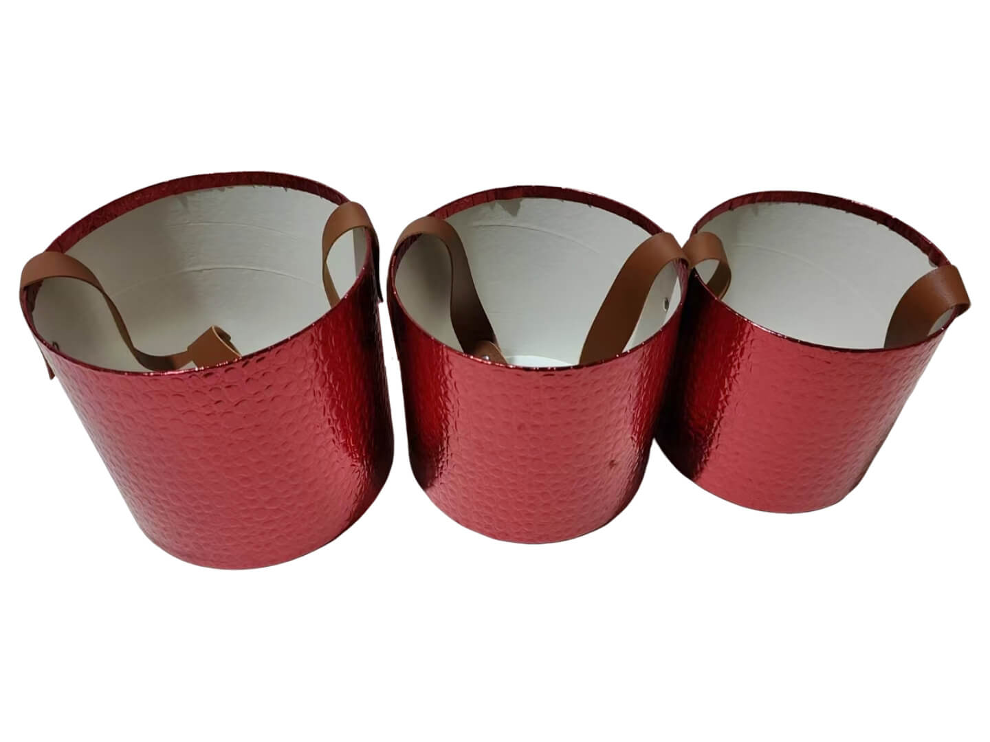 Набор коробок для цветов с ручкой из экокожи 18*17, 16*15,5, 15*14,5, 3 шт., красный