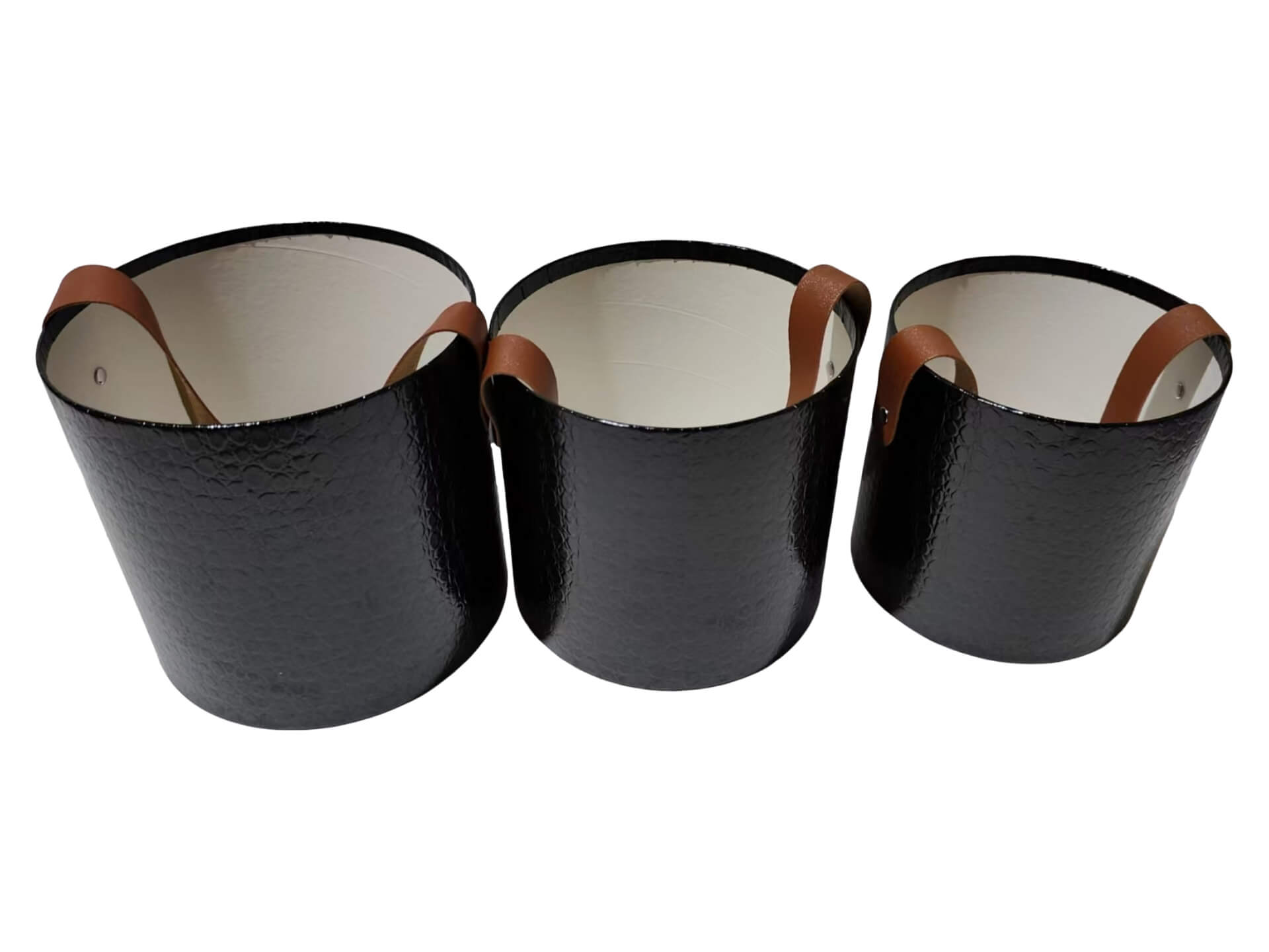 Набор коробок для цветов с ручкой из экокожи 18*17, 16*15,5, 15*14,5, 3 шт., черный