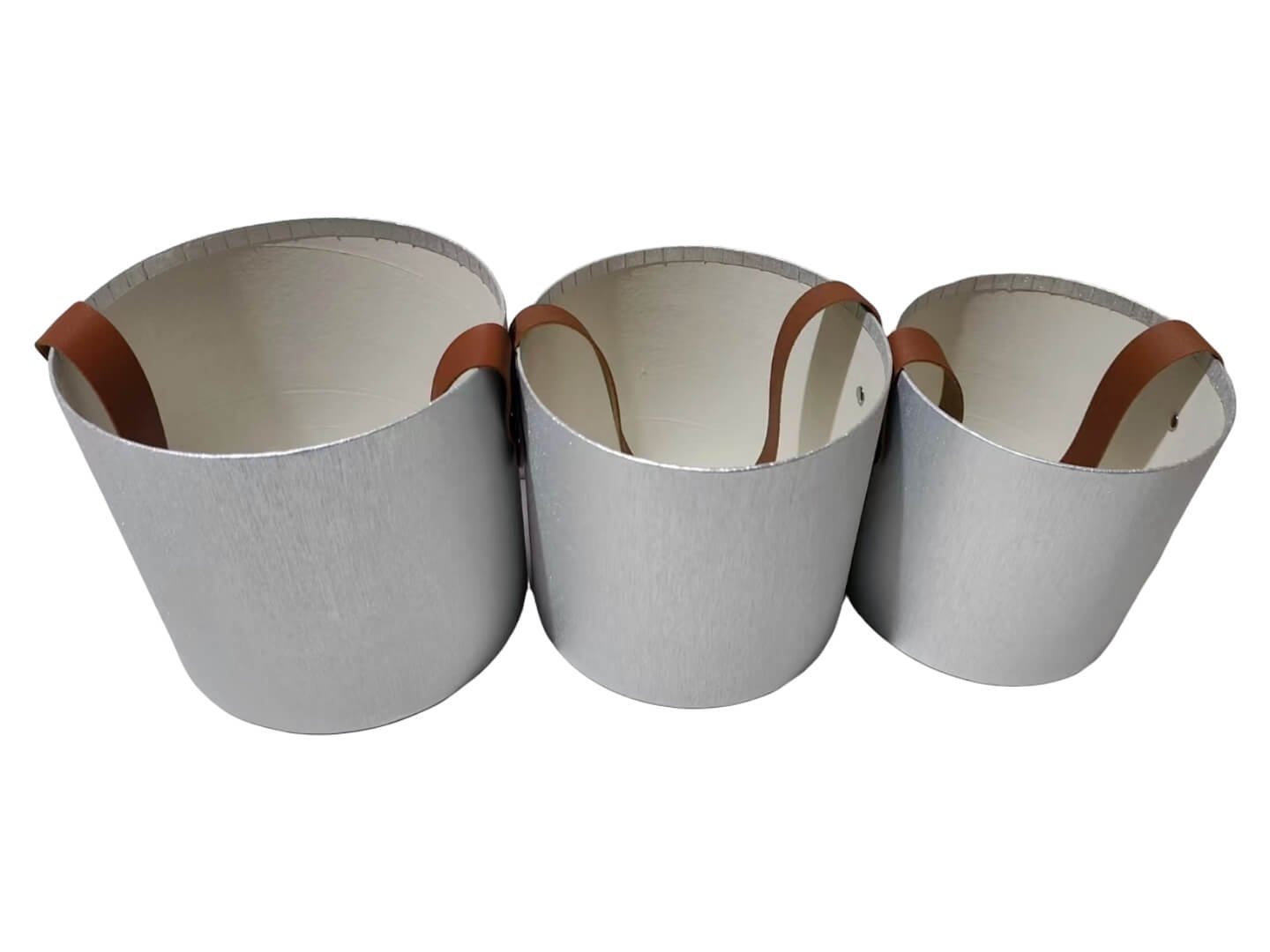 Набор коробок для цветов с ручкой из экокожи 18*17, 16*15,5, 15*14,5, 3 шт., серебро