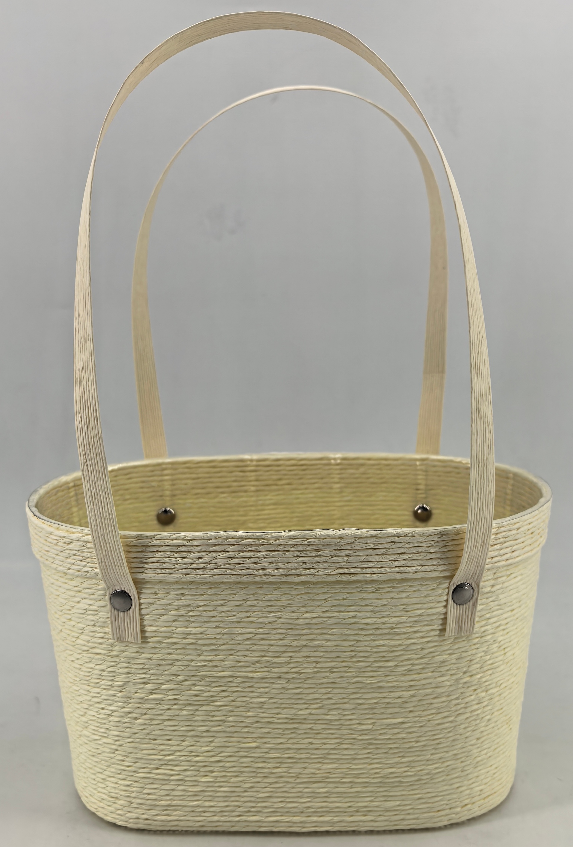 Сумочка плетеная из бумажной лозы, верх 23*13 см, низ 20*9 см, высота 14 см, молочный