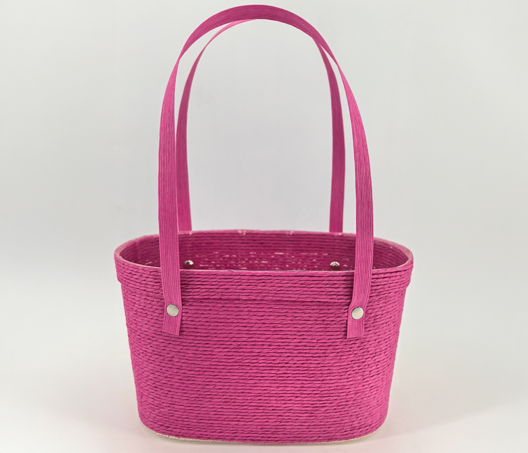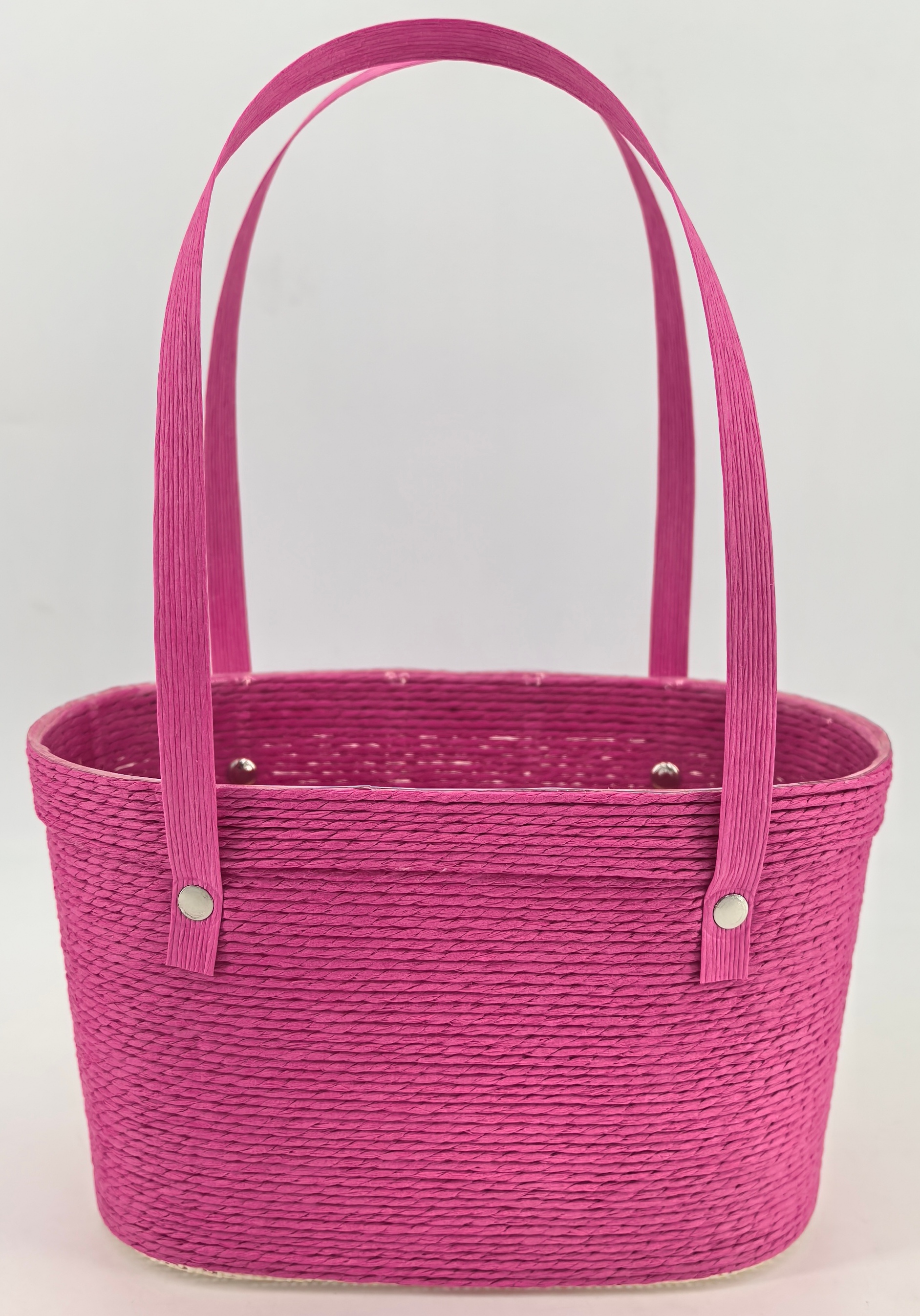Сумочка плетеная из бумажной лозы, верх 23*13 см, низ 20*9 см, высота 14 см, фуксия