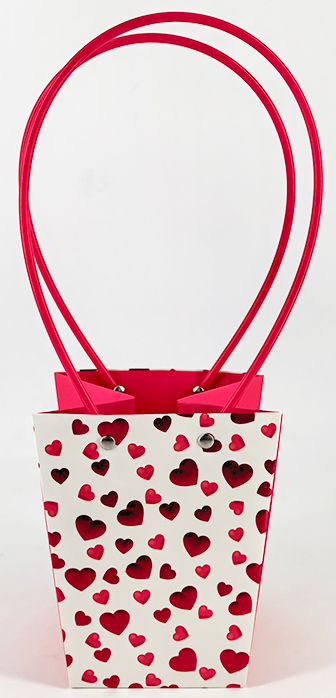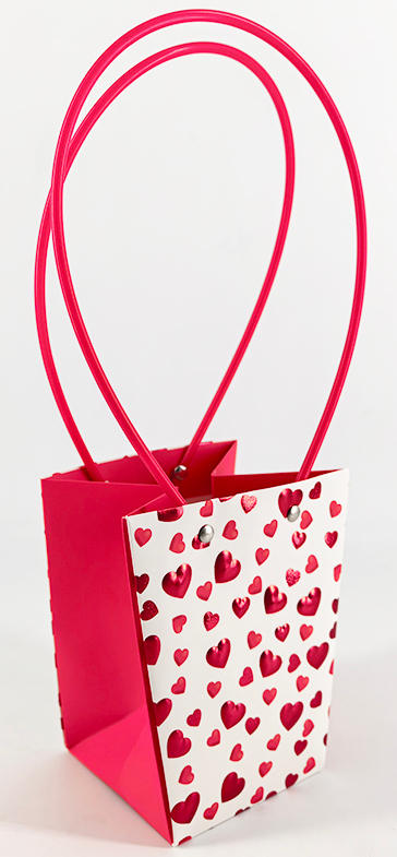Пакет подарочный c фольгированными сердцами, 13*9.5*15.5 см., 10 шт./упак., красный