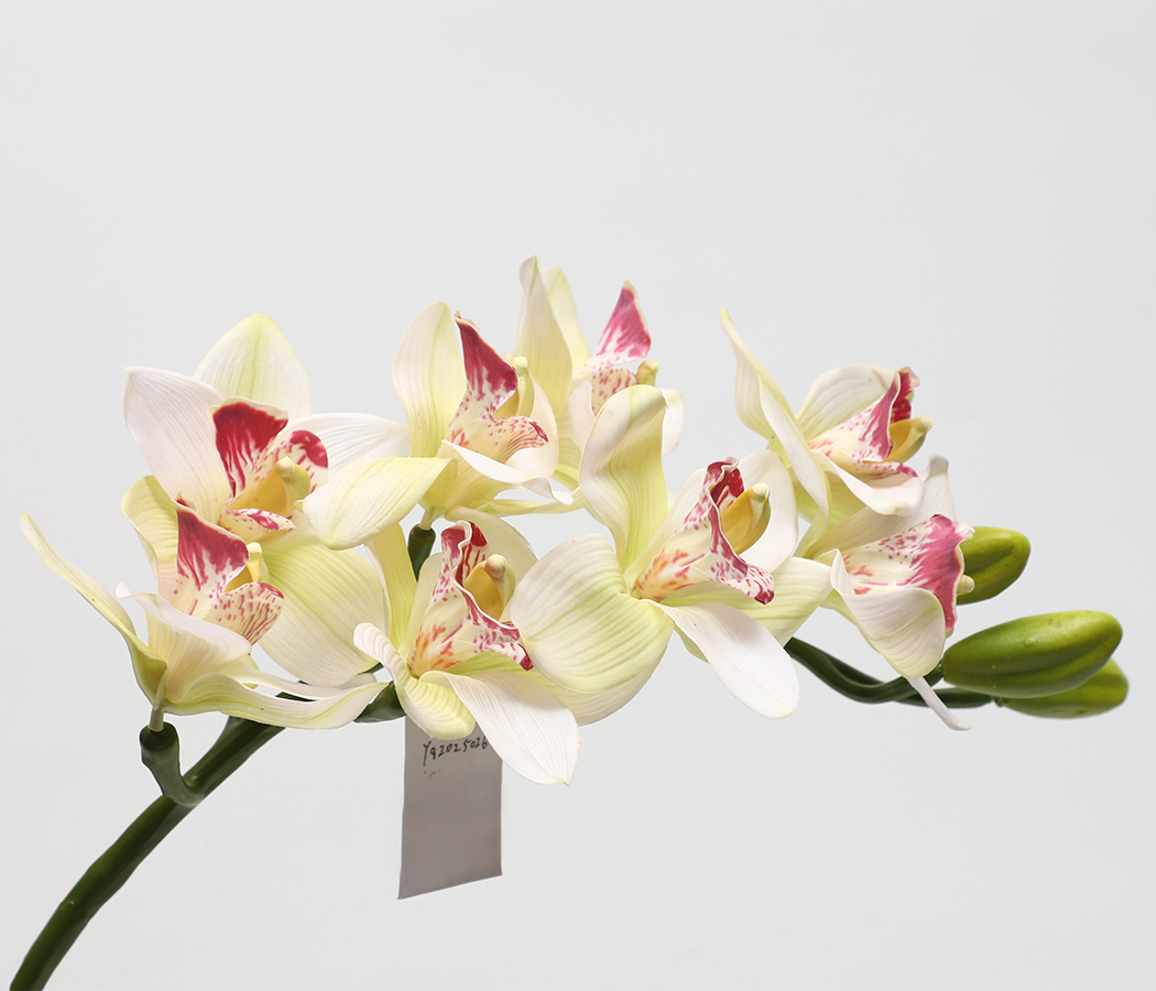Цветок искусственный декоративный "Орхидея", 82 см., 8 соцветий, кремовый