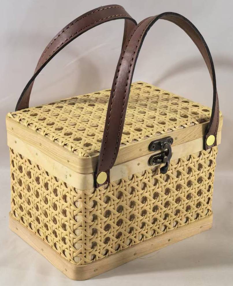 Корзина плетеная с крышкой (ротанг), 17x12x12/22 B:17x12 см, 1 шт., натур.