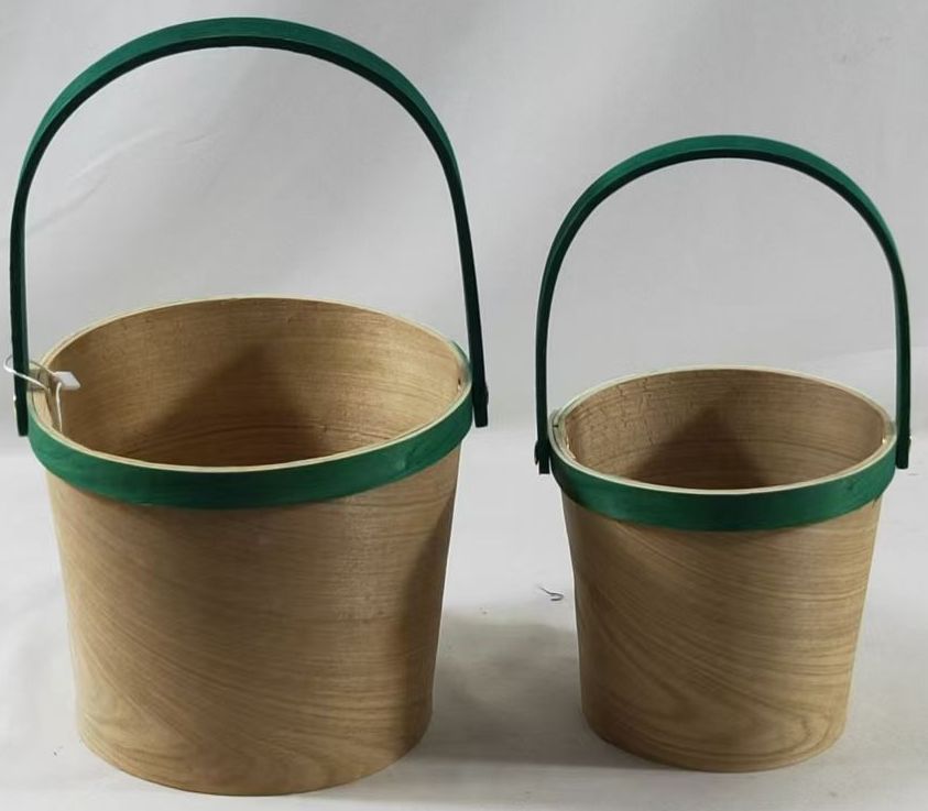Набор корзин плетеных (секвойя), Dia.16xH.14/26 B:13 см, Dia12,5xH11,5/21,5 B:10см, 2 шт., натур./зеленый