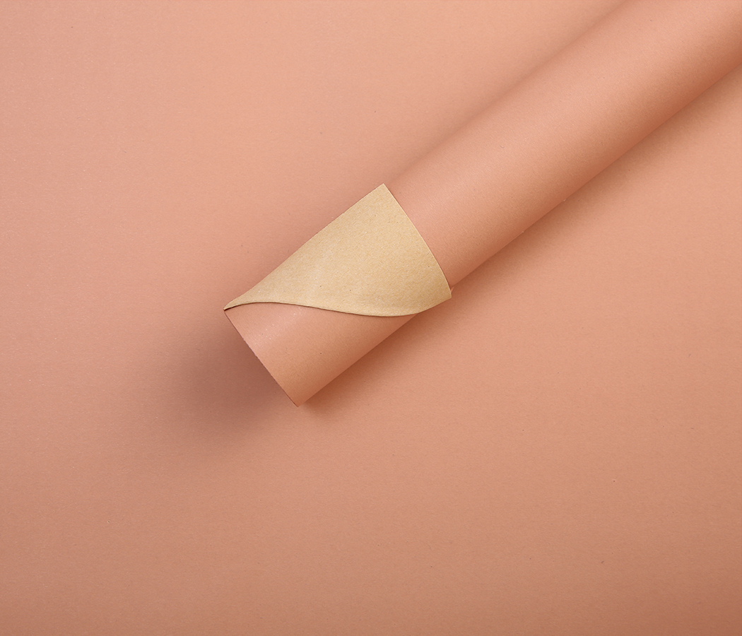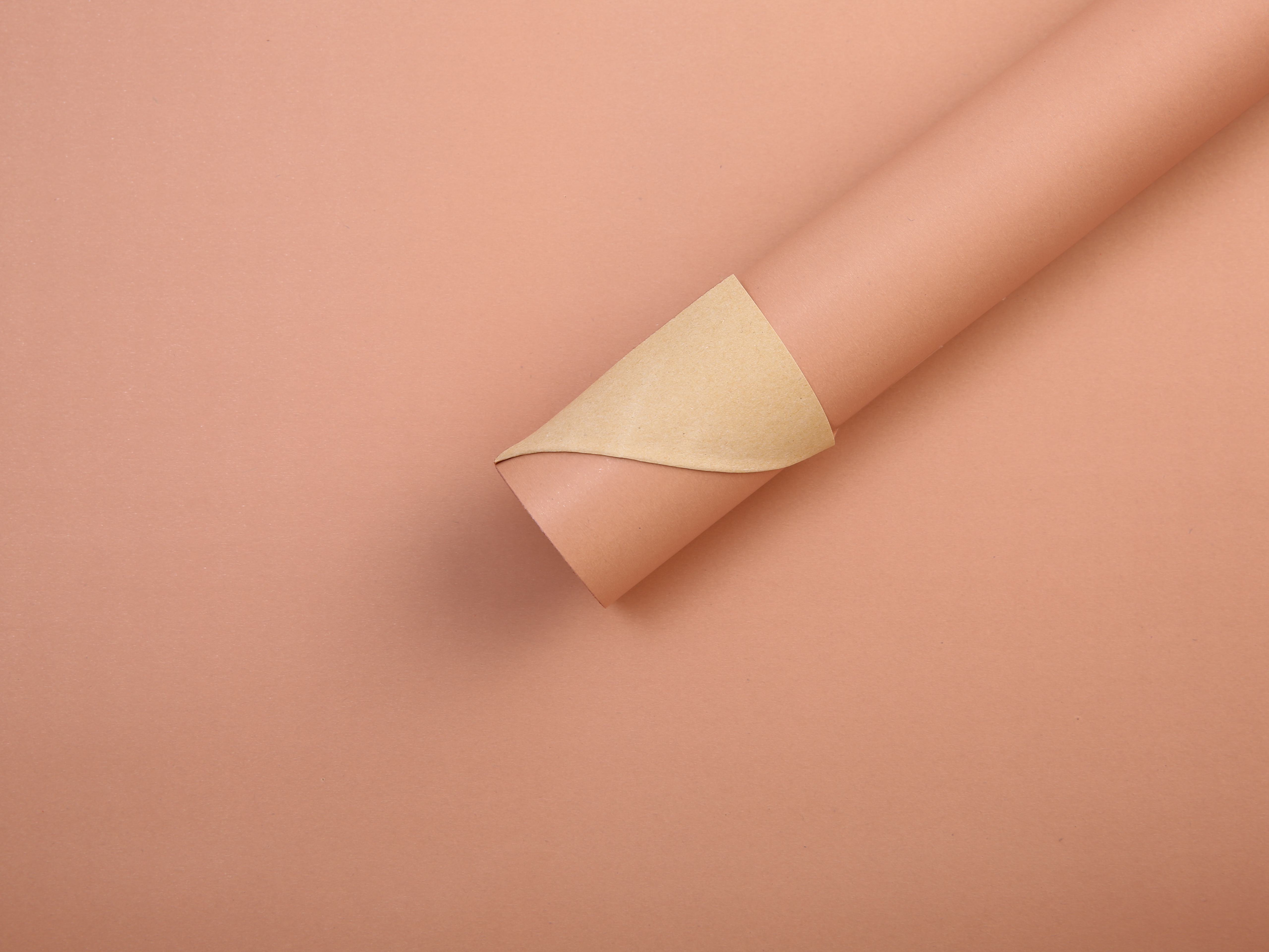 Водонепроницаемый упак. материал флористическая пленка с крафт бумагой, 80гр/м2, 50 см*10 м, розово-бежевый