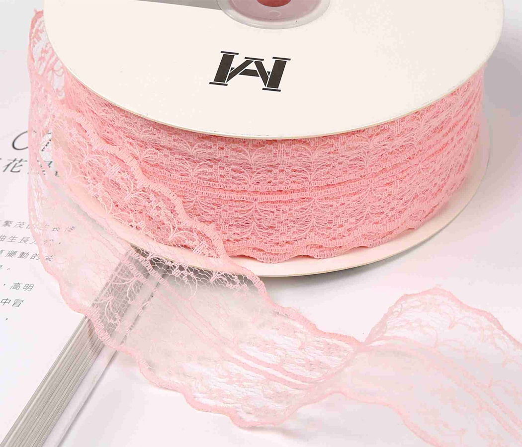 Лента декоративная "Изящное кружево", полиэстер, 45 мм х 50 ярд., пионовый (4 шт./упак.)