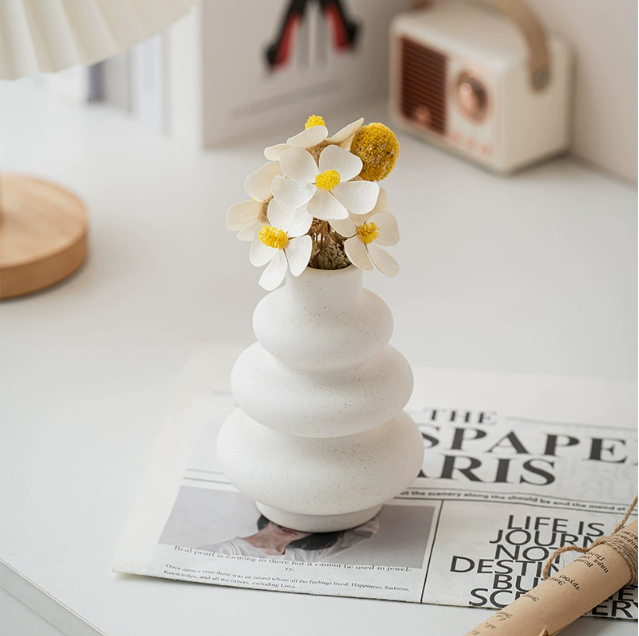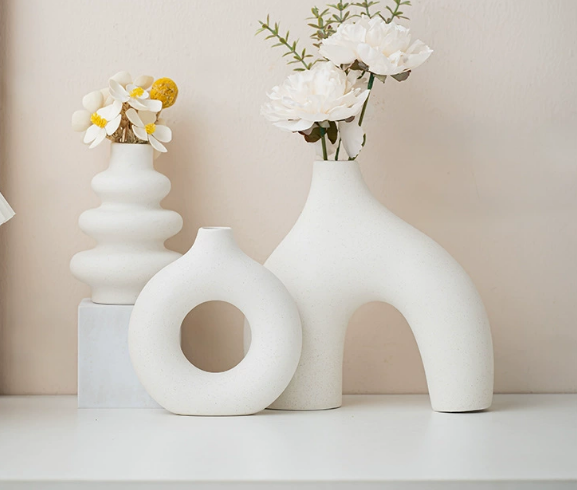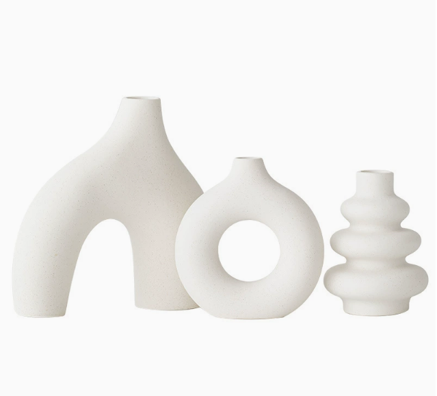 Набор керамических ваз 3 шт.: 9,4*2,5*12,4/13*2*14/19,8*2,8*19,3 см., цвет белый