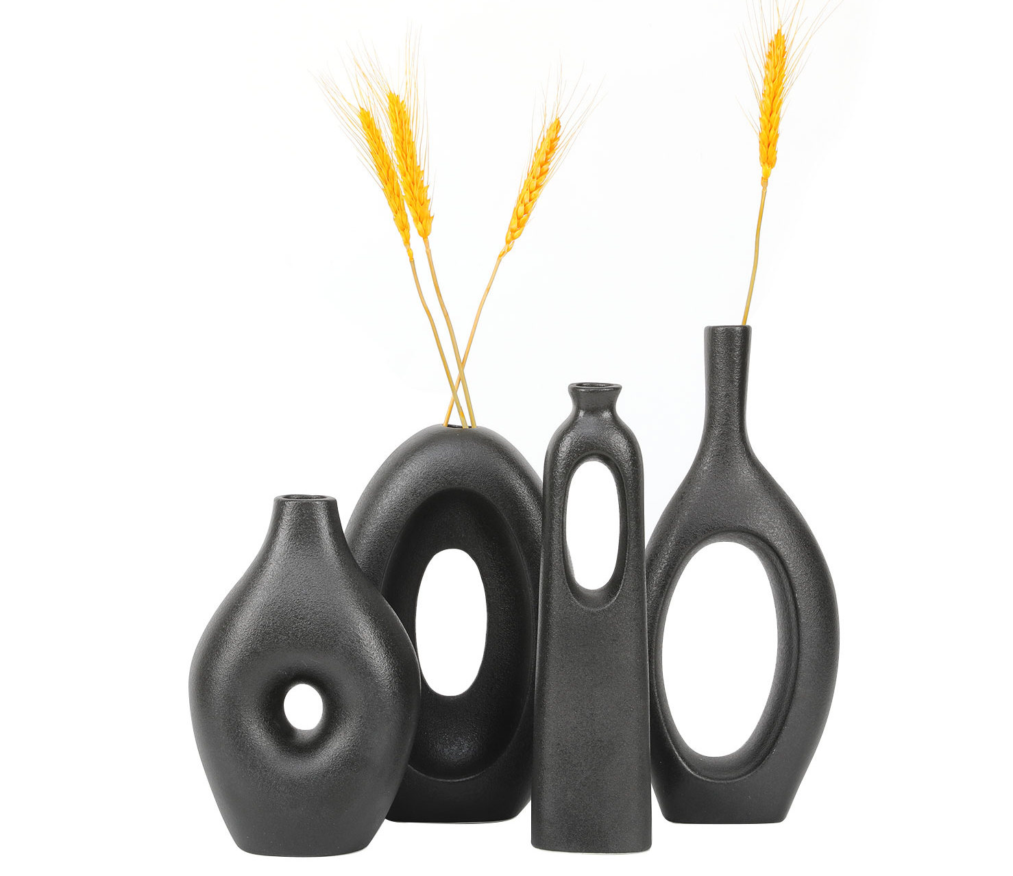 Набор керамических ваз 4 шт.: 12,7*5,9*21/12*7,2*18,1/6,2*4*24,2/12*4,2*27,3 см., цвет черный