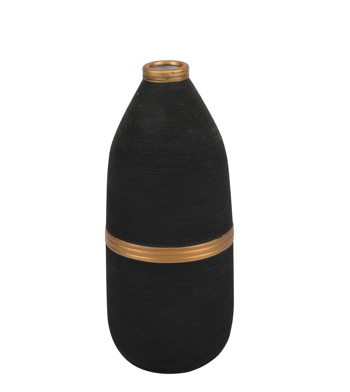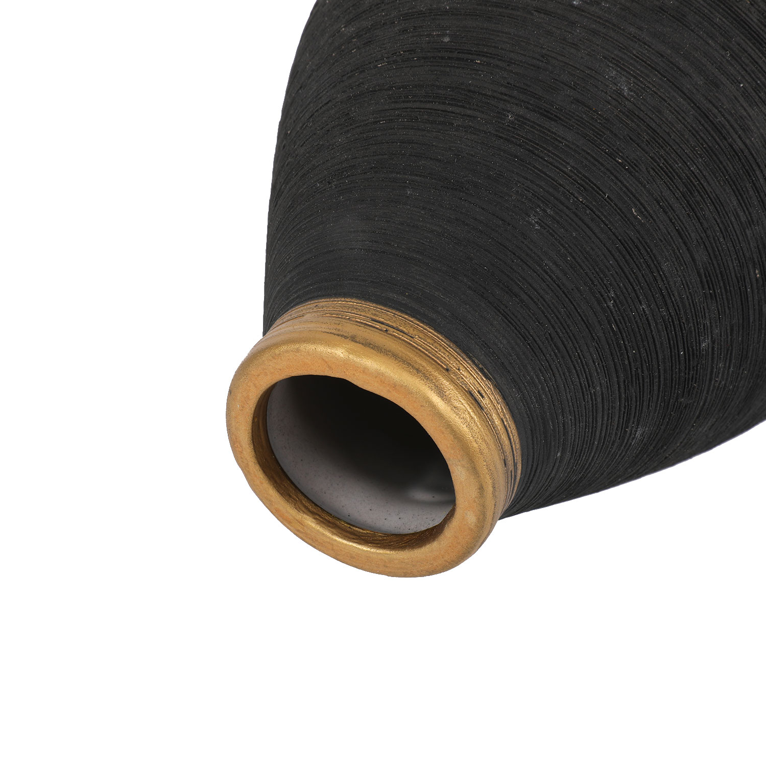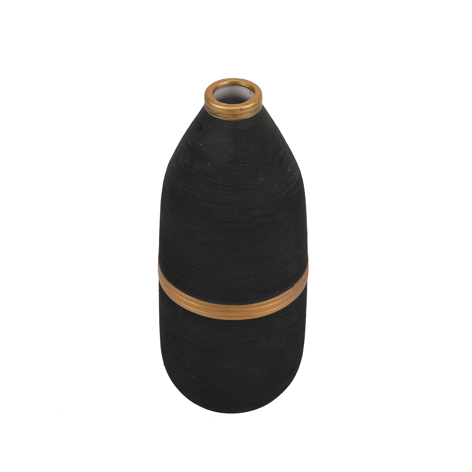 Ваза керамическая с металлической окантовкой, цвет черно-золотой, 12,5*30,8 см